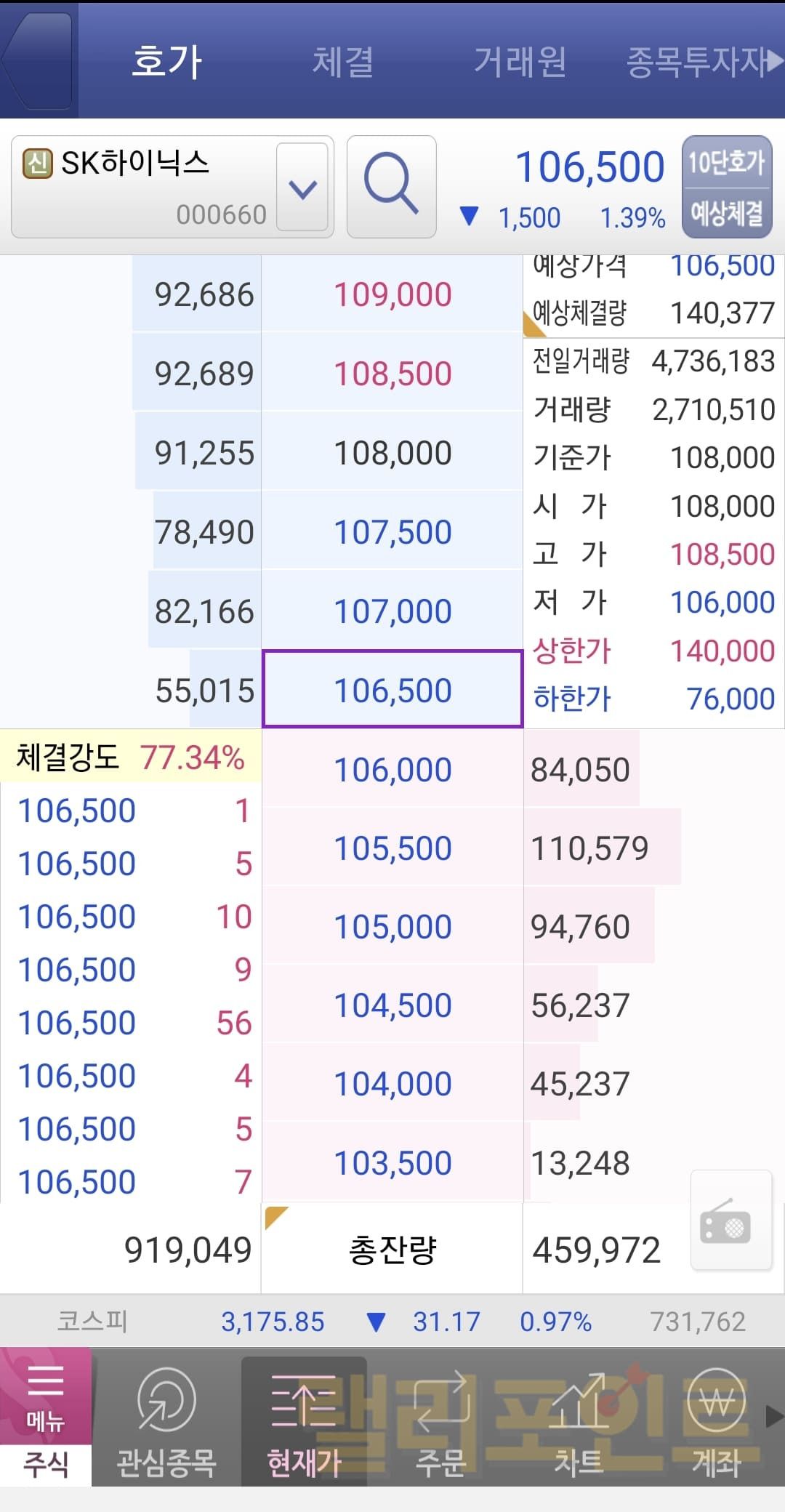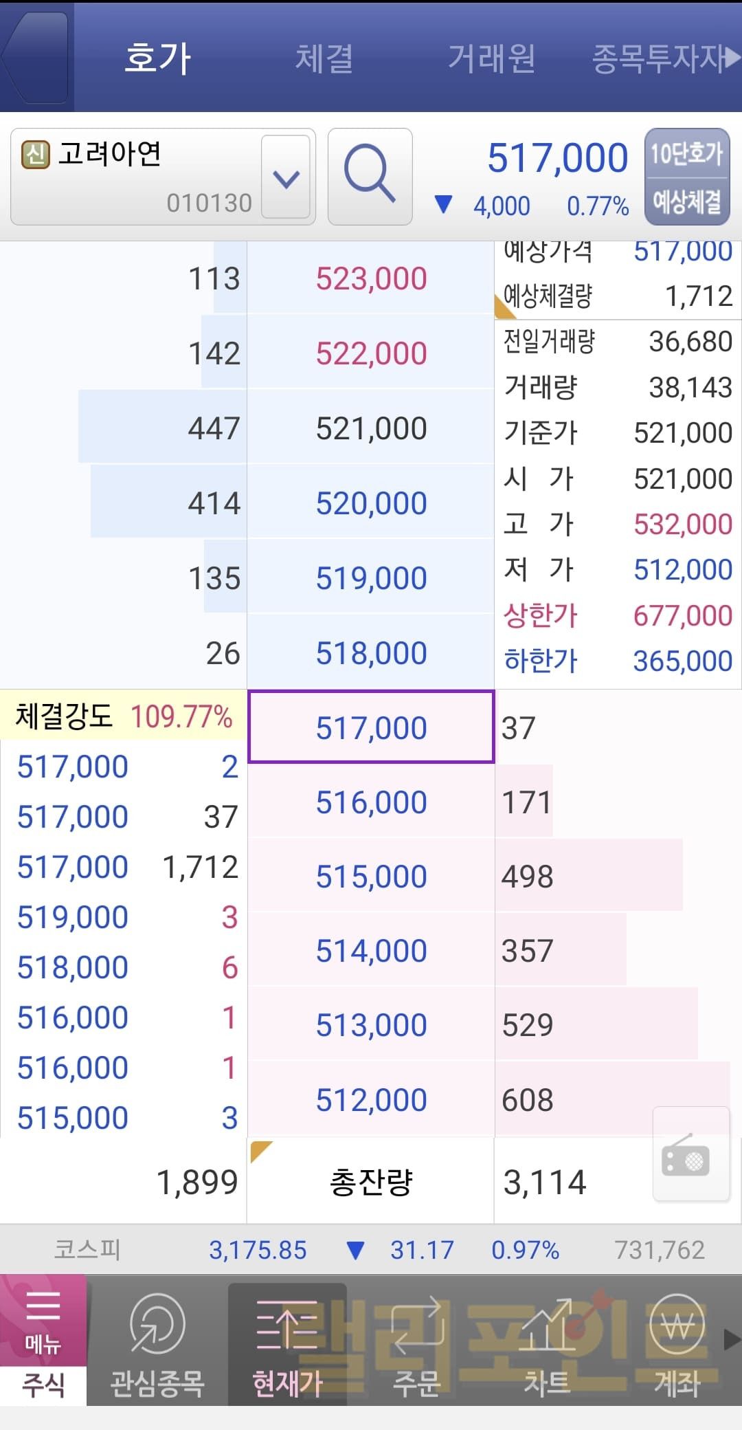 ⑦ 주가가 500,000원 이상이면 호가 단위는 [1,000원]이 됩니다.