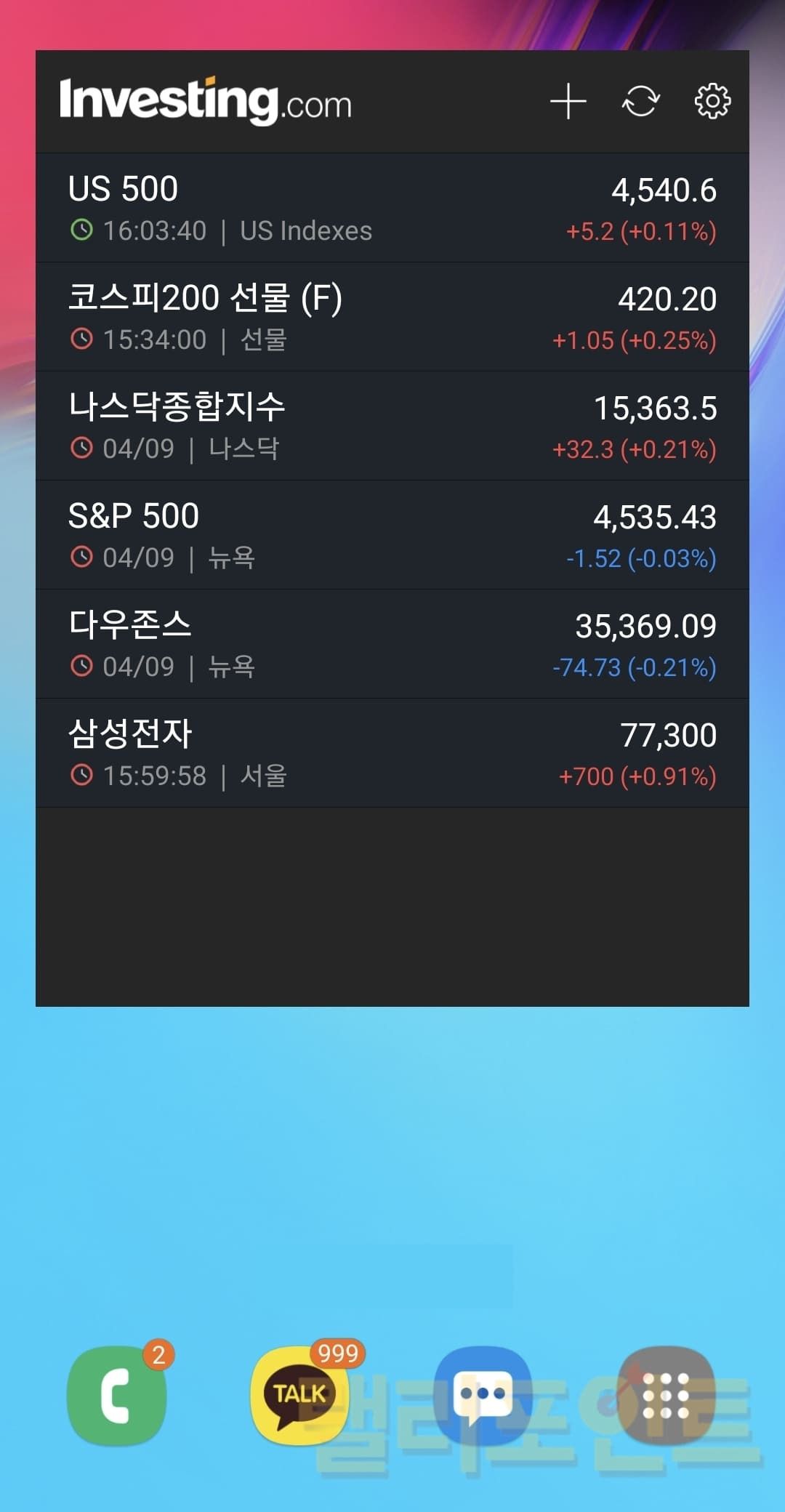 ↑ 위젯을 확인해보면 실시간으로 갱신되는 원자재, 주식, 지수의 가격을 볼 수 있습니다.