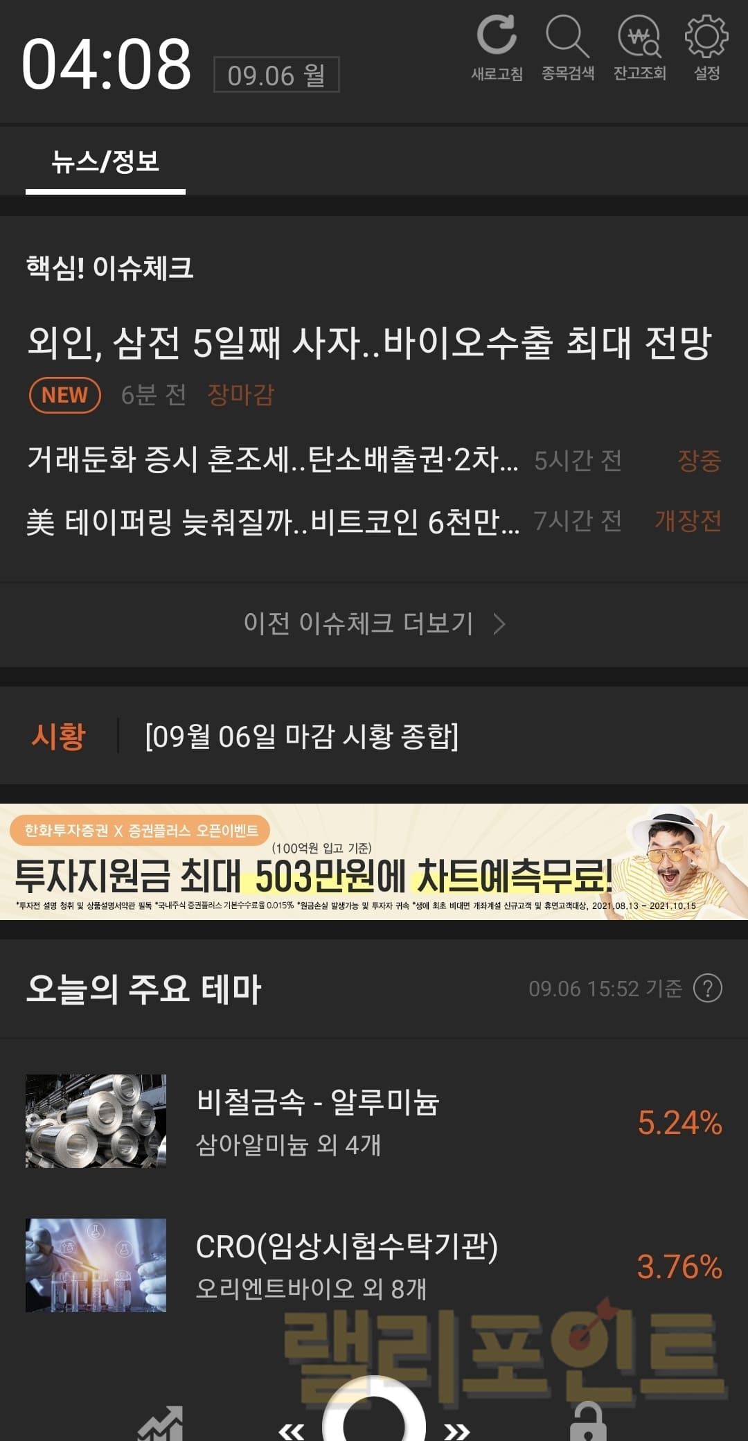'한국투자자라면 증권플러스는 필수 앱'으로 자리잡았다고 확실히 말씀드릴 수 있을 것 같네요. 증권플러스에서는 위와 같이 락스크린을 통해서 스마트폰의 화면을 실행하자마자 보이는 주식정보 화면을 제공하고 있는데요. 보시다시피 오늘의 이슈, 뉴스, 테마를 보기 좋게 정리해주고 우측 상단에서 나의 잔고 및 종목 검색 등의 기능들을 바로 제공해주고 있습니다. 정리하자면 [한국의 인베스팅 + 위젯 + 락스크린]으로 주식 어플로 강력히 추천드립니다.