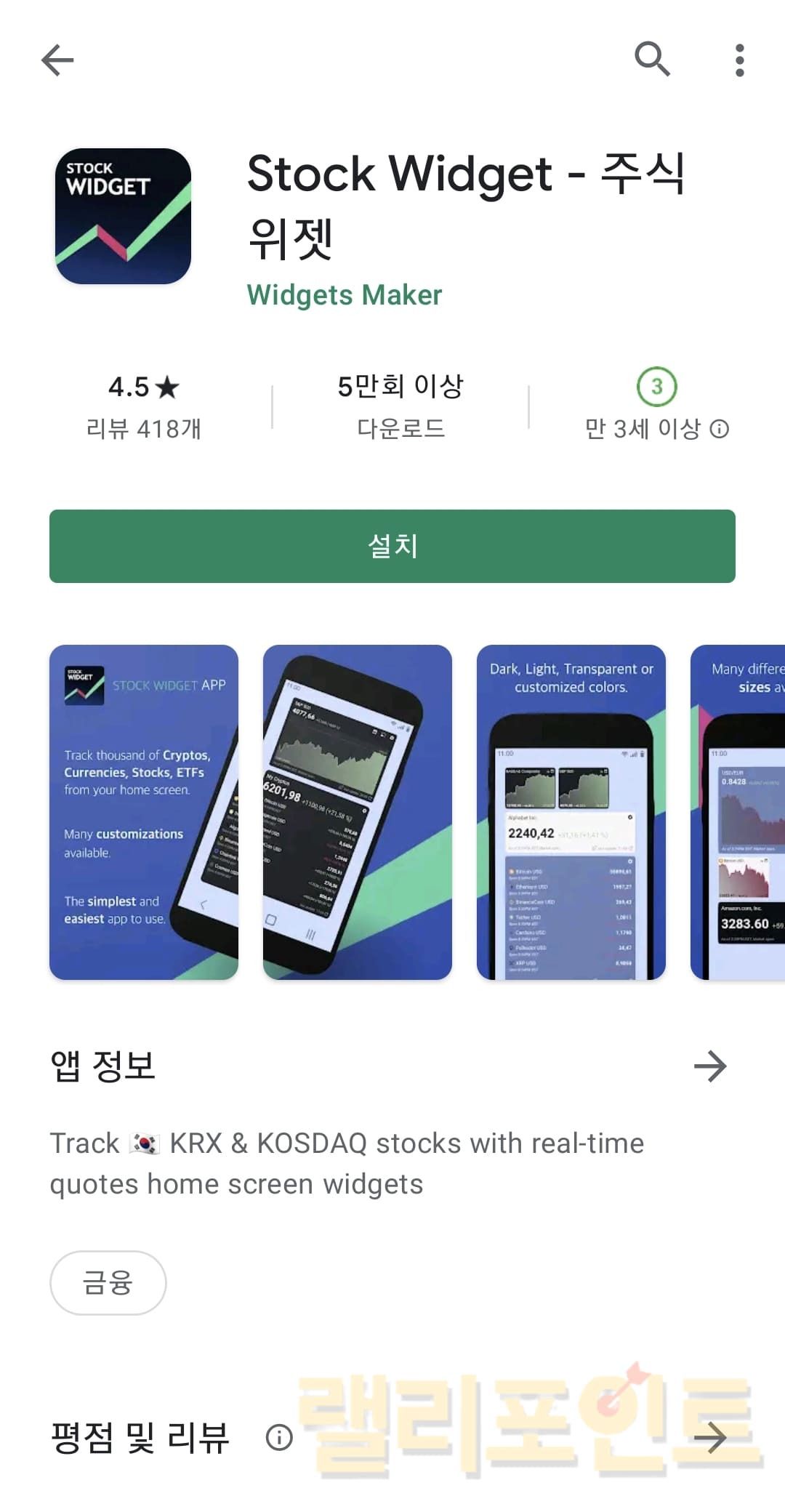 먼저 위젯을 지원하는 '주식 위젯 추천 순위 목록'에 있는 어플리케이션을 구글 플레이 스토어에서 다운로드 받으셨다면 아래 과정을 그대로 따라해주시면 됩니다.
