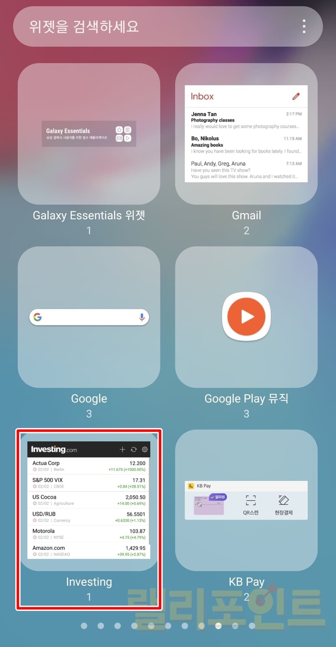 인베스팅 어플은 스마트폰 위젯 또한 제공하며 내가 관심목록으로 등록한 주식, 원자재, 지수의 실시간 가격을 볼 수 있습니다.