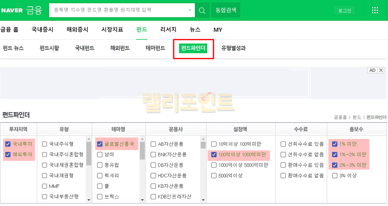 3. 펀드파인더 조검검색 이용하기