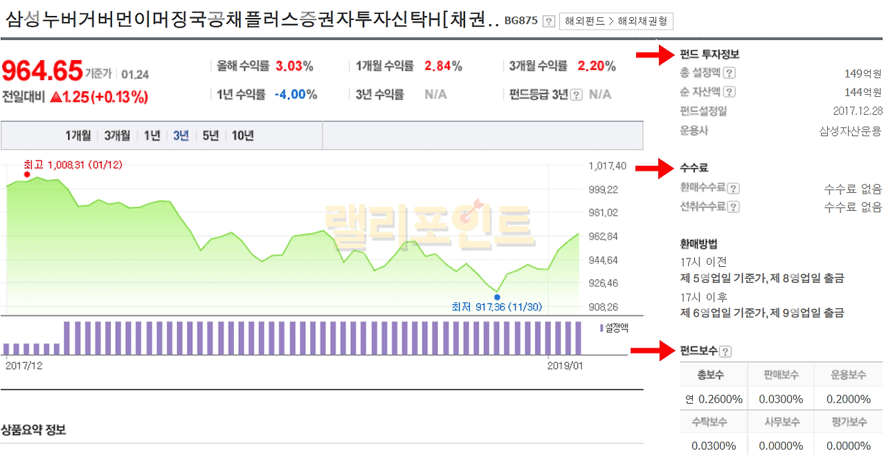 2. 펀드 투자정보, 수수료, 펀드보수를 확인합니다.
