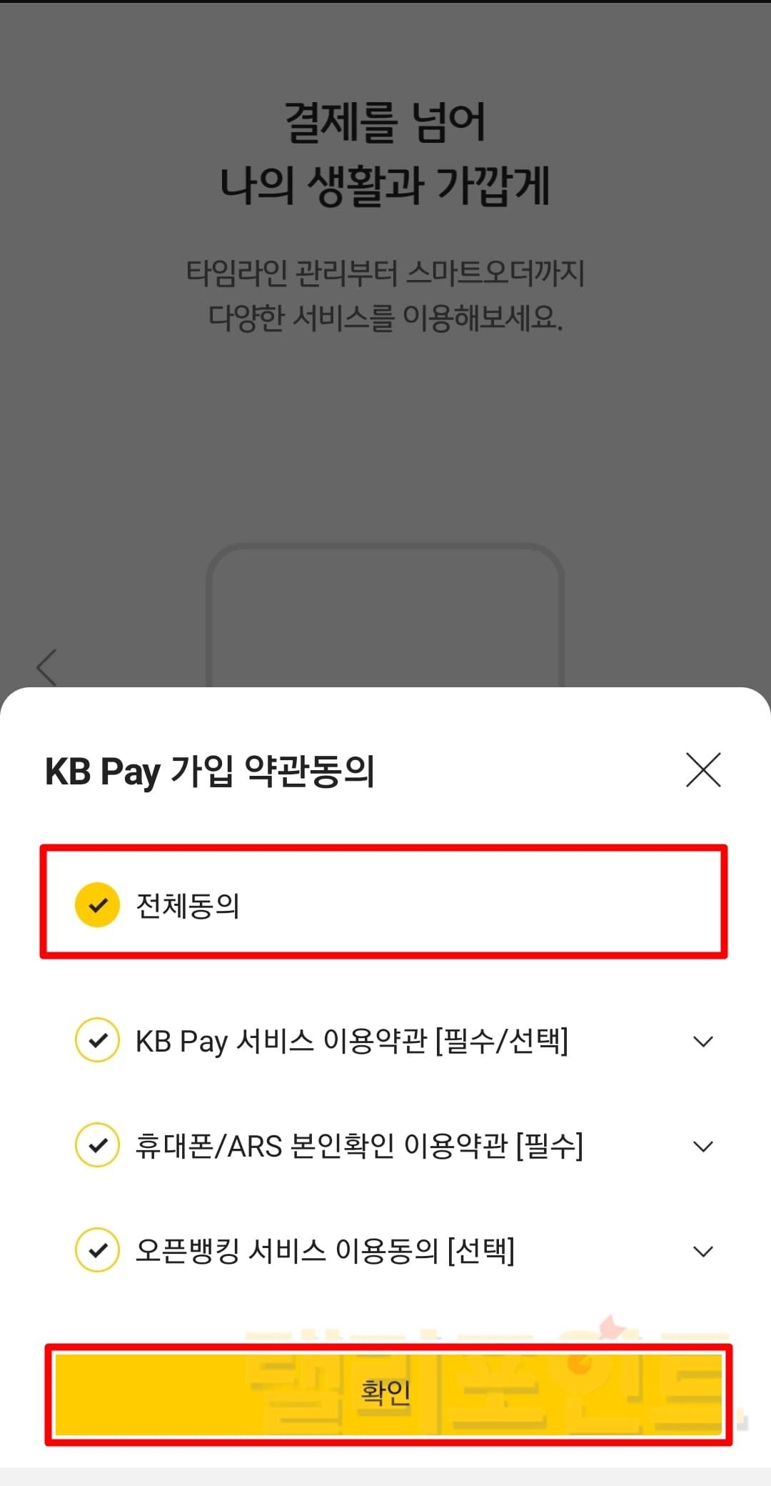 - KB Pay 가입 약관에 전체동의합니다.