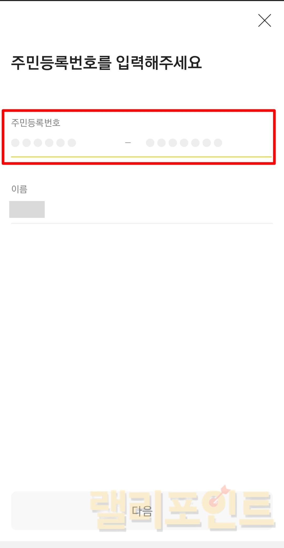 - 주민등록번호를 입력합니다.