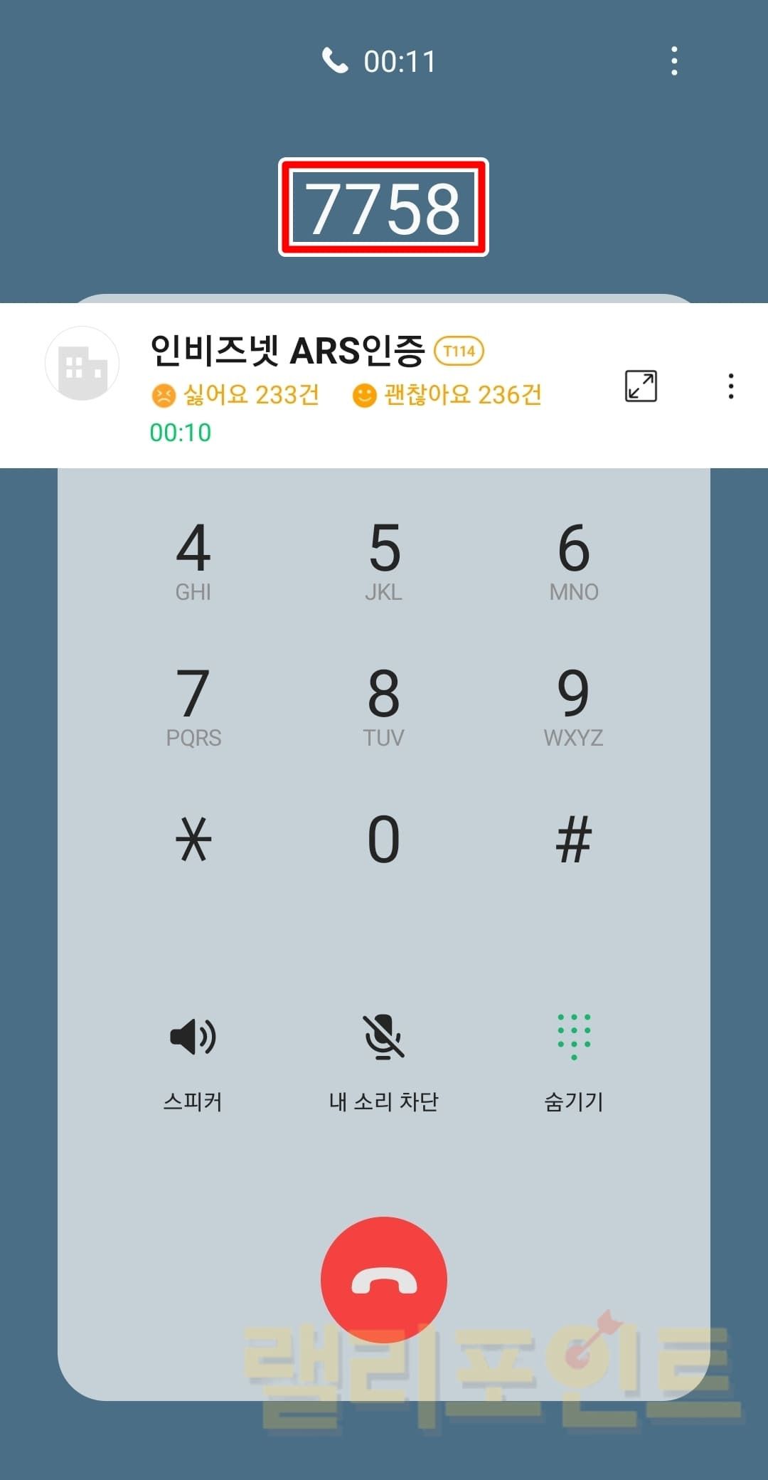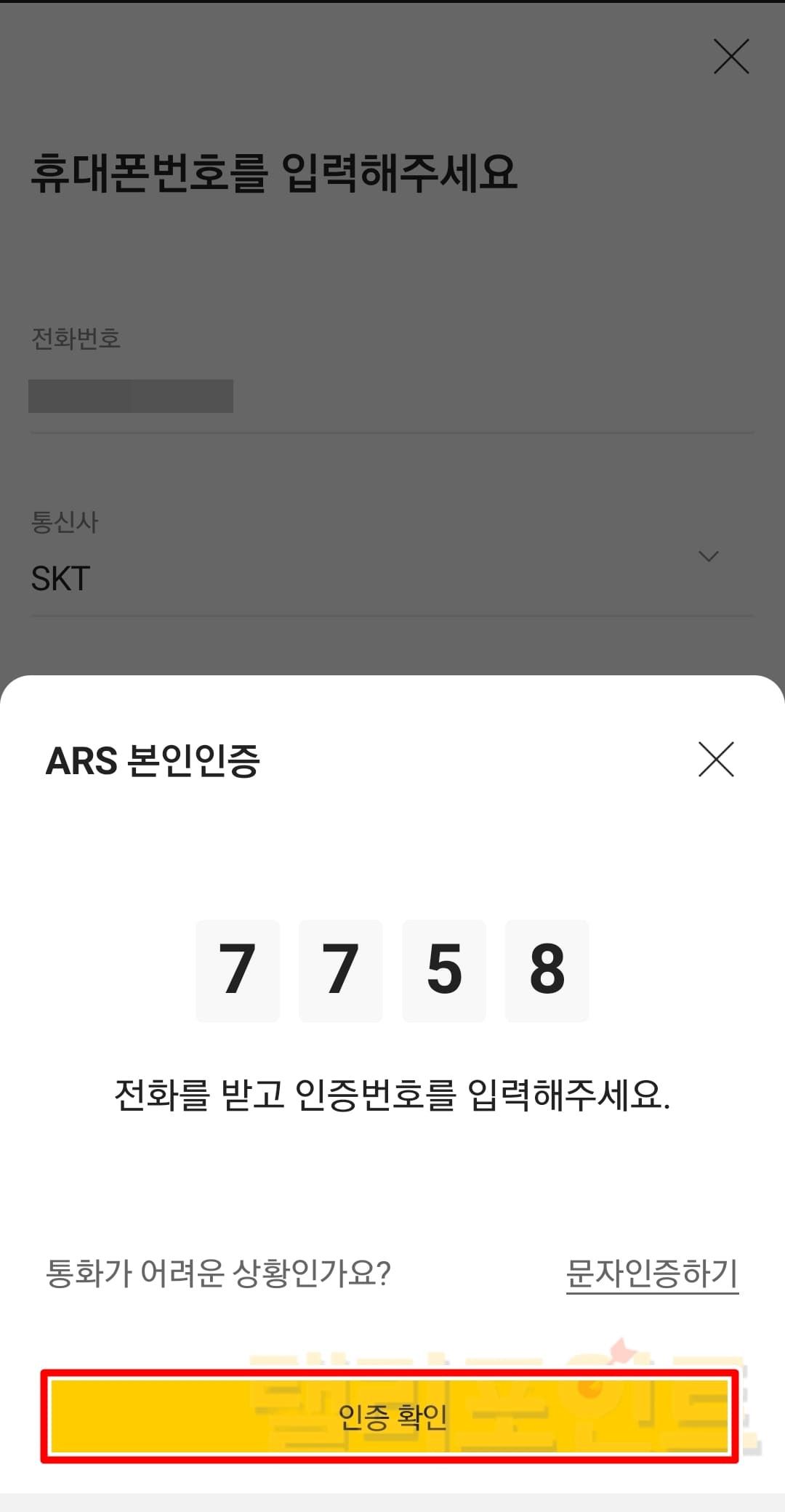 - 전화가 수신되면 ARS 인증번호를 기입합니다.