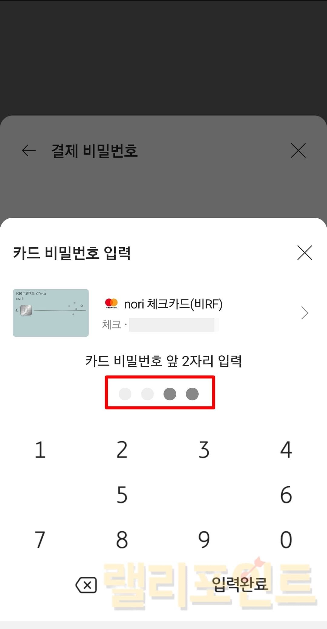 - 나의 국민카드 비밀번호 앞 2자리를 입력합니다.