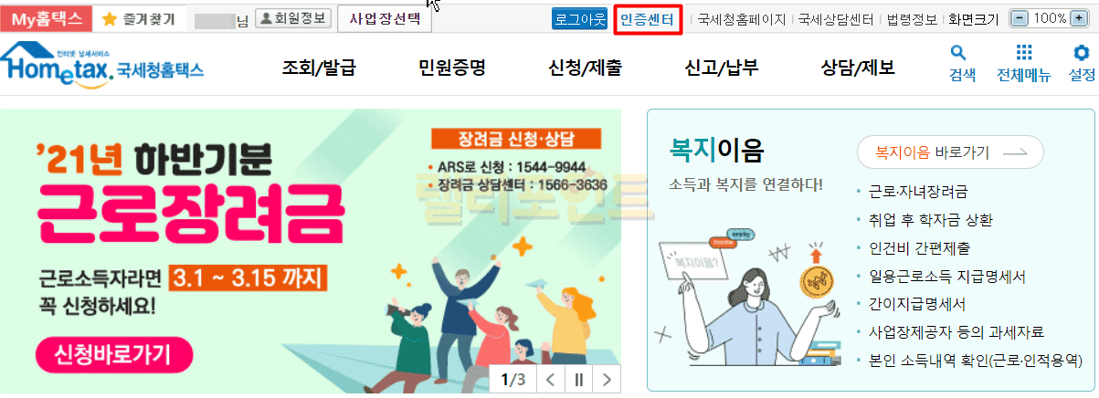 1. 국세청홈택스 사이트에 접속합니다.