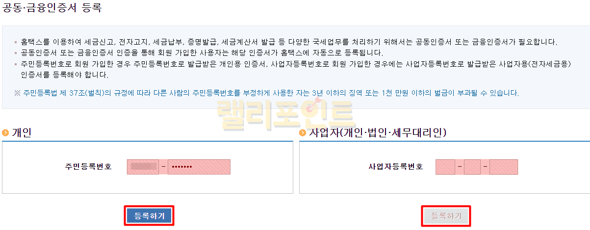 1. 홈택스 공동인증서 등록 방법