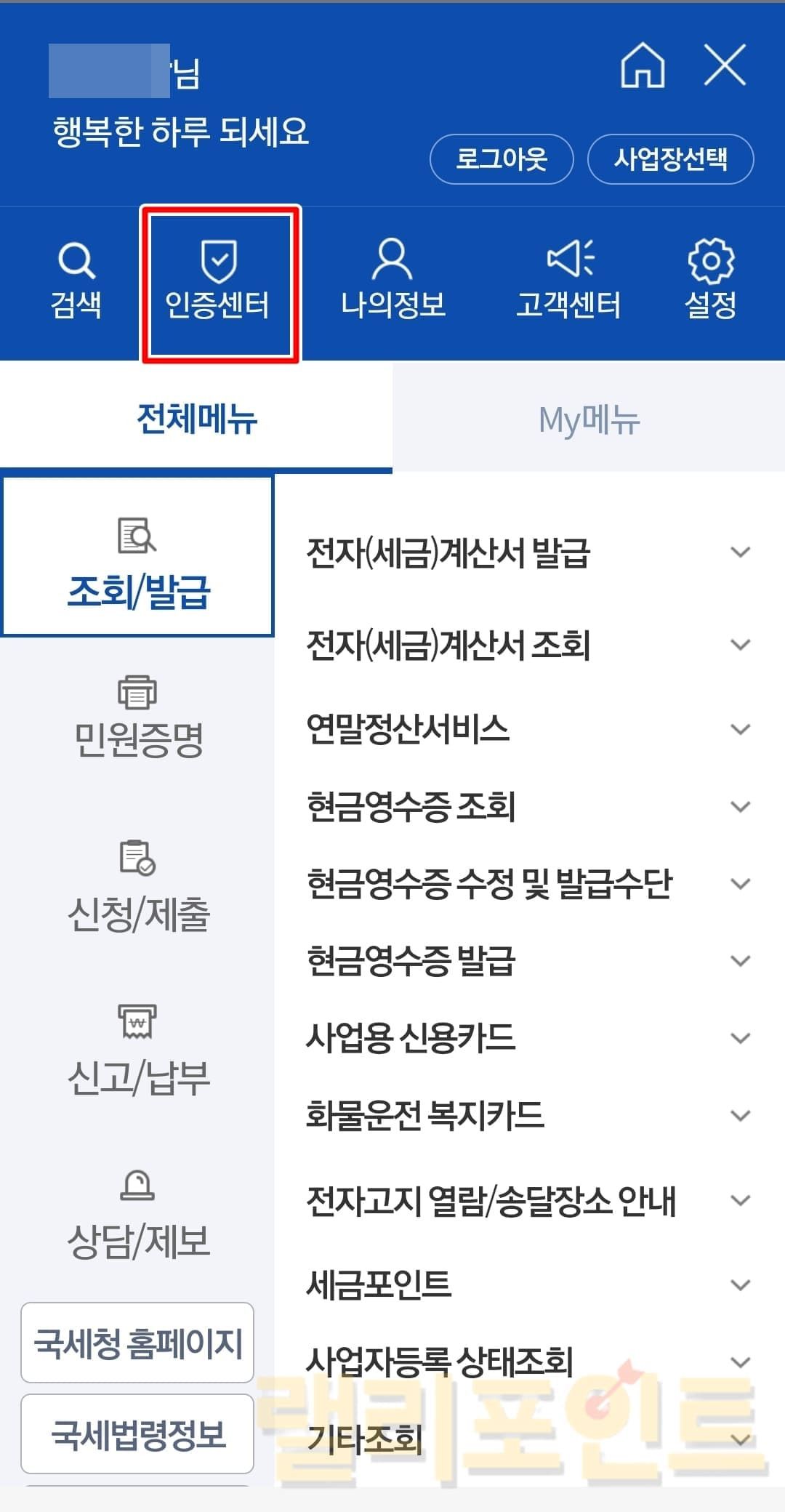 1. 인증센터를 누릅니다.