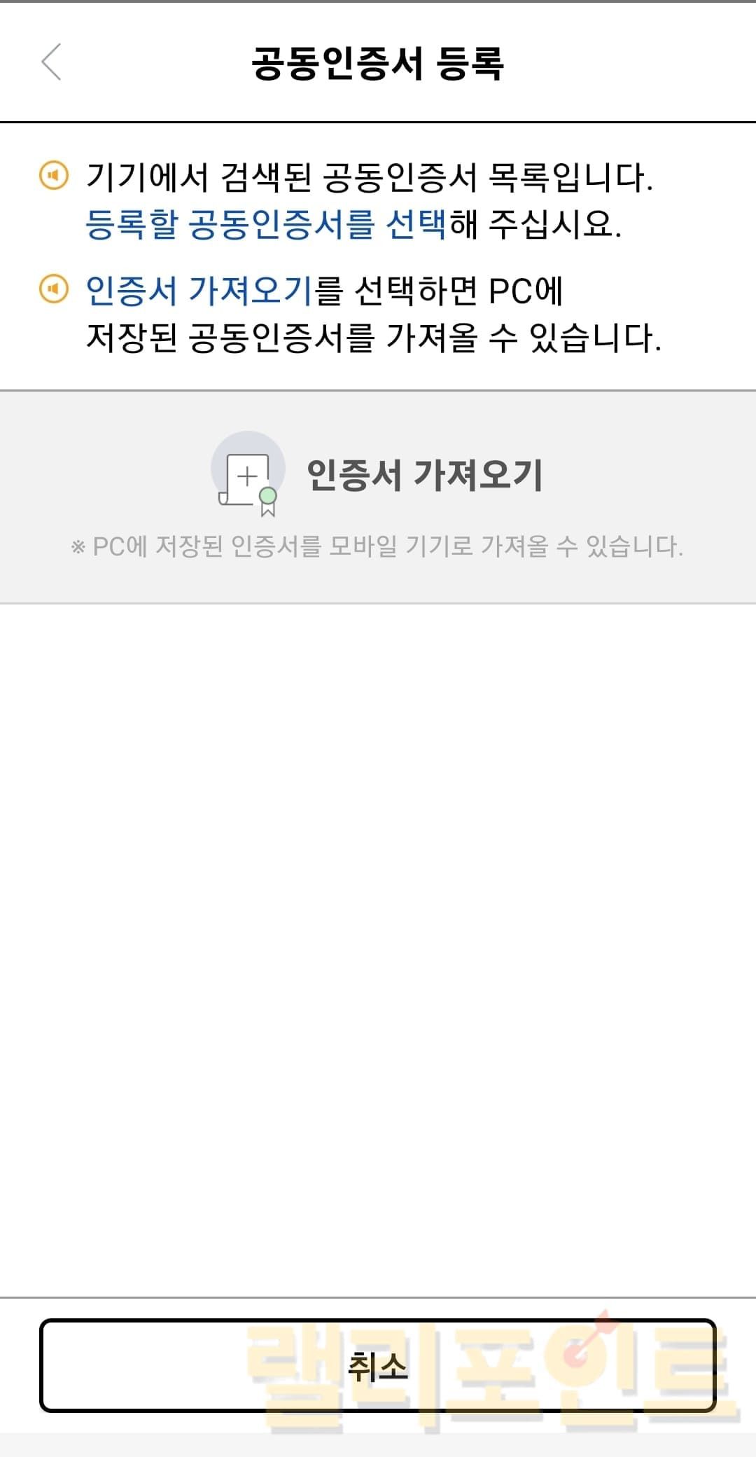 1. 등록할 공동인증서를 선택합니다.