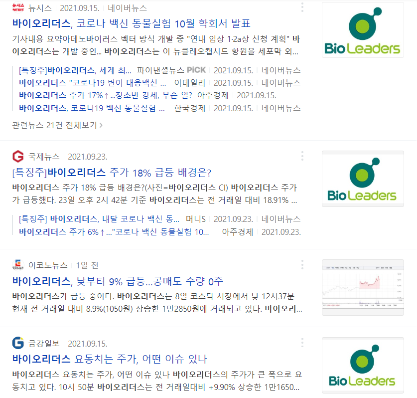 먼저 들어가기 앞서서 제가 바이오리더스 주가 전망을 관심있게 보고 분석하는 이유는 바이오 기업에서 가장 중요하다고 생각하는 '이슈성'에 대해서 굉장히 높은 주주친화적인 정책을 가지고 있다는 것입니다. 여기서 이슈에 관한 주주친화적인 부분은 적극적인 홍보와 IR, 뉴스를 의미하는데 타 바이오 기업에 비해서 기업 관련 이슈에 대해서 뉴스 노출빈도가 굉장히 높습니다.