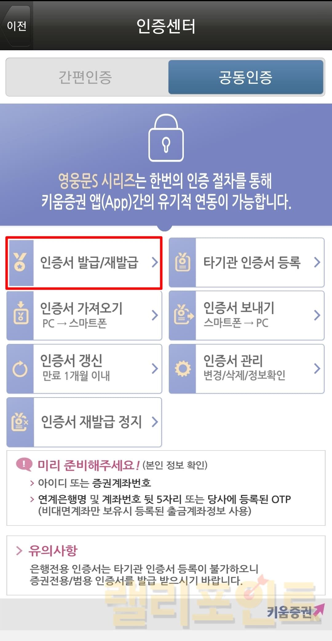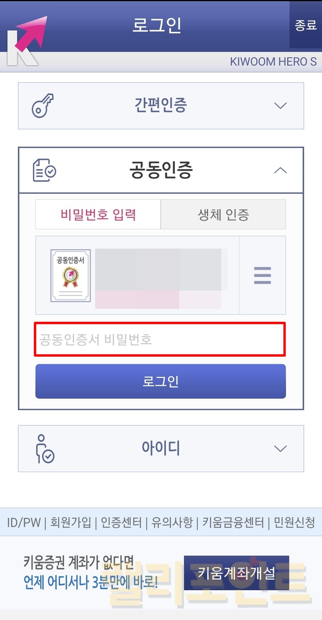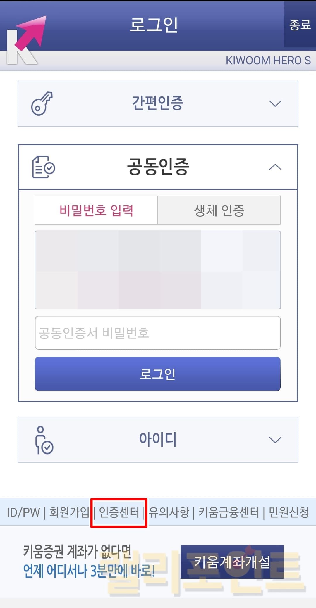 키움증권 공동인증서 발급 방법 (모바일, PC)