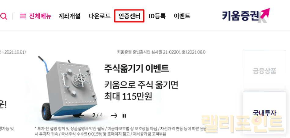 - 로그인 화면 하단에서 인증센터를 클릭합니다.