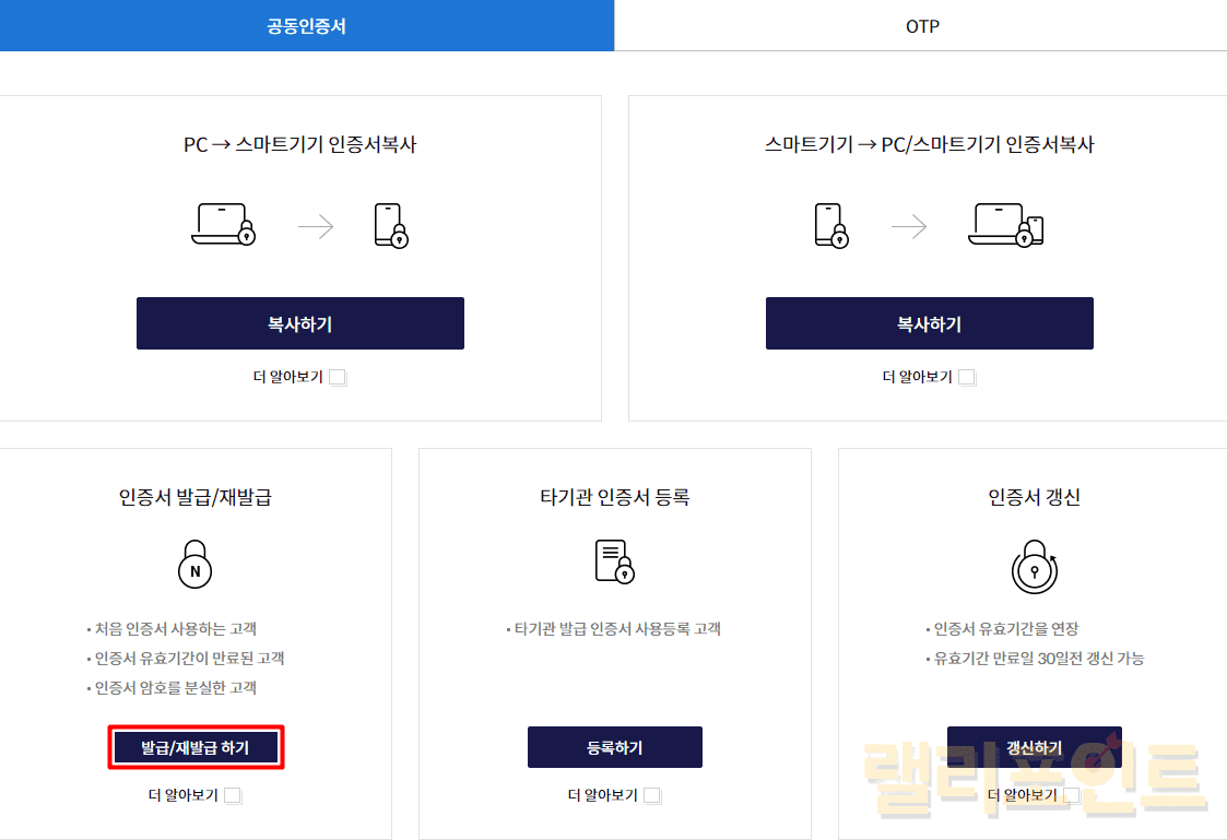 만약 컴퓨터에서 공동인증서를 발급받았다면 스마트폰에서 거래하기 위해서는 공동인증서를 복사-내보내기 과정을 한번 더 진행해야 하기 때문에 스마트폰에서만 거래하신다면 PC가 아닌 영웅문S 앱에서 공동인증서를 발급받는 것이 좋습니다. 참고로 이전에 이용하고 있던 공동인증서가 있던 경우 재발급시 이 전의 공동인증서는 자동 폐기되어 사용이 불가능해지니 주의하시길 바랍니다.