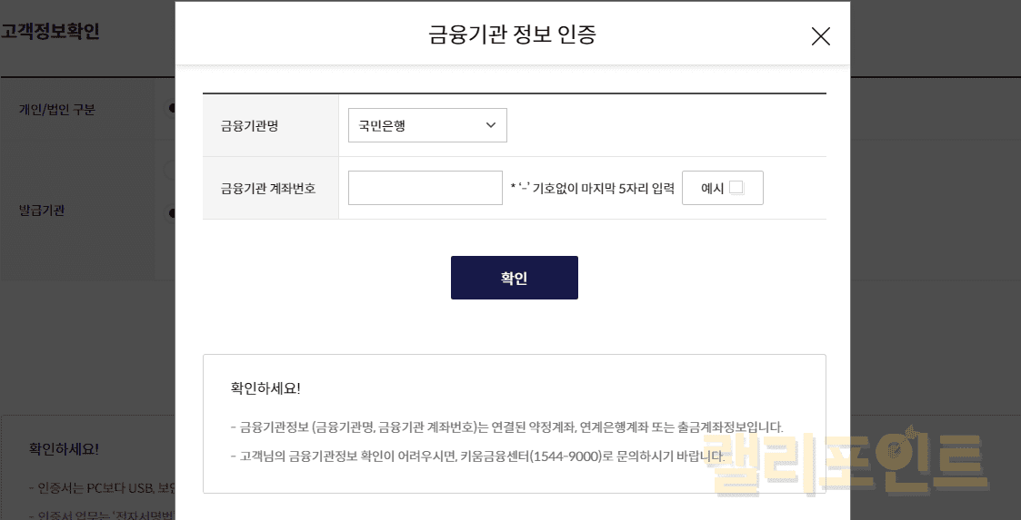 - 키움증권에 연결된 은행계좌를 입력합니다.