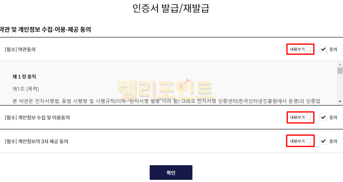 - 내용보기를 누르고 약관에 모두 동의합니다.