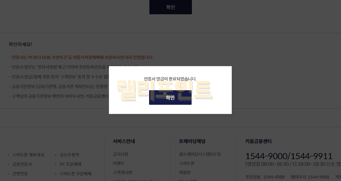 - PC에서 키움증권 공동인증서 발급이 완료되었습니다.