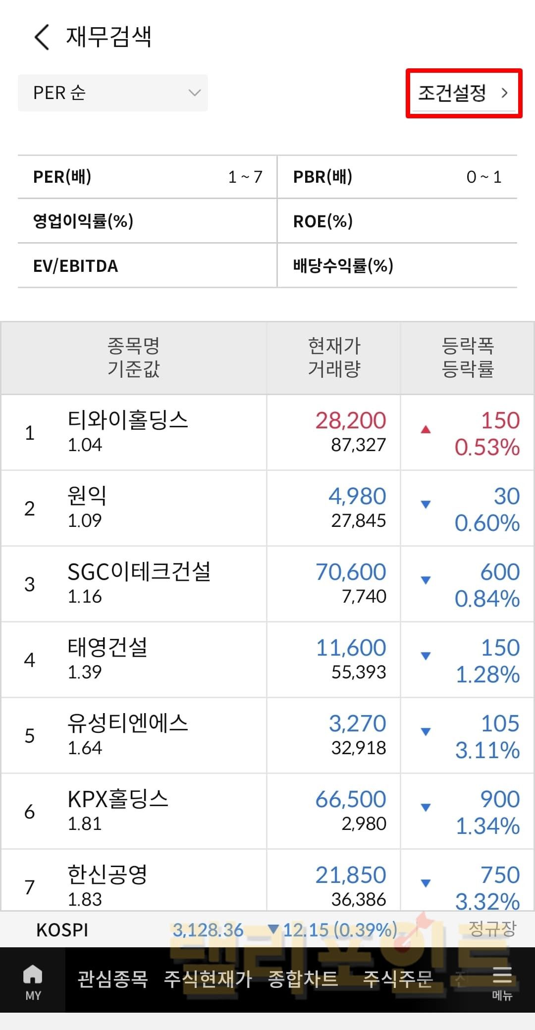 투자할 주식 종목을 고를 때 중요하게 사용되는 증권사 조건검색은 HTS에서 모두 지원되지만 몇몇 증권사의 MTS에서는 지원되지 않는 희귀한 기능입니다. 그래서 조건검색을 지원하지 않는 증권사 어플을 이용하고 있다면 스마트폰 모바일에서 조건검색을 위해서 별도의 사이트나 앱을 설치하셔서 사용하는 경우가 있는데 다행히도 삼성증권 mPOP 앱에서는 조건검색 기능을 지원하고 있음으로 간편하게 사용할 수 있습니다.