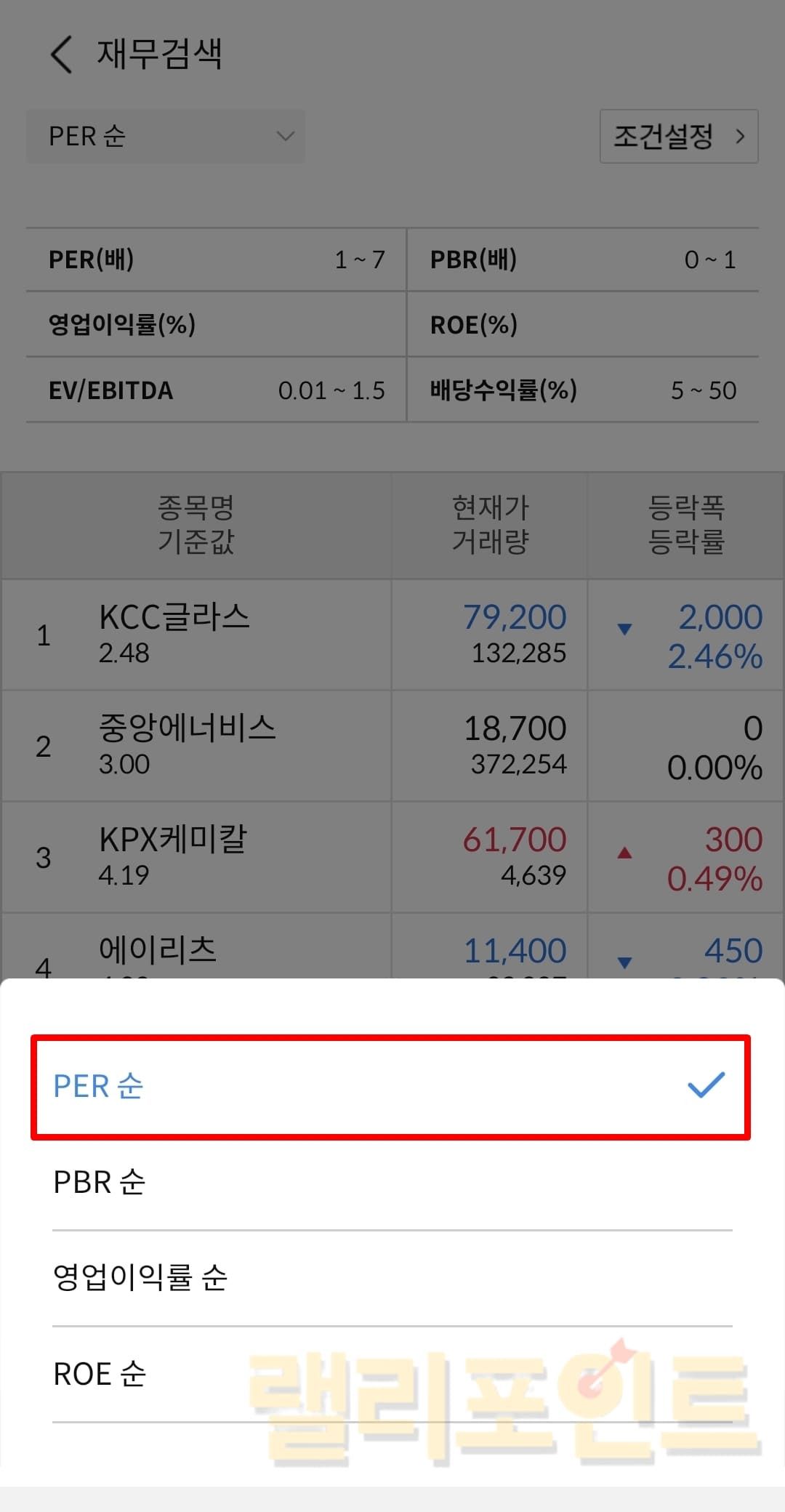 - 조건에 맞는 주식 종목 리스트를 확인할 수 있습니다.