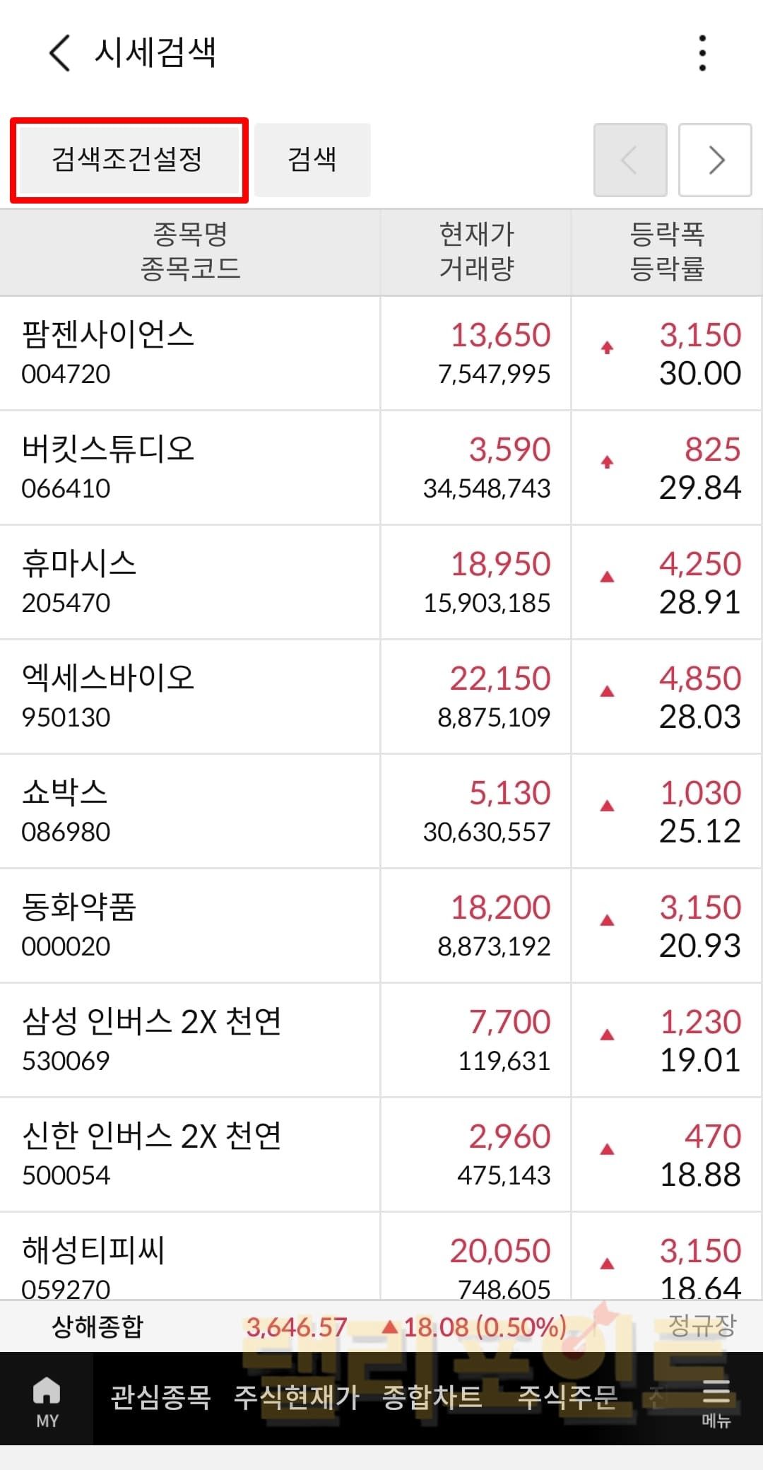 당일강세종목에서 사용할 수 있는 7가지 검색 조건