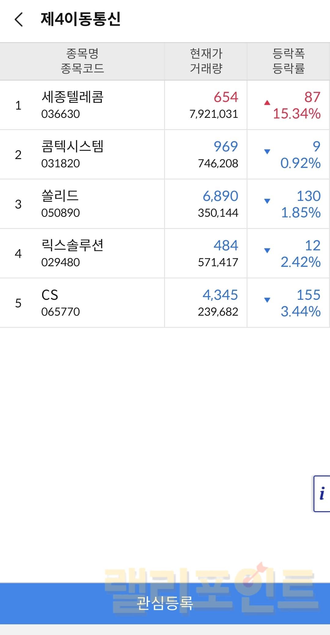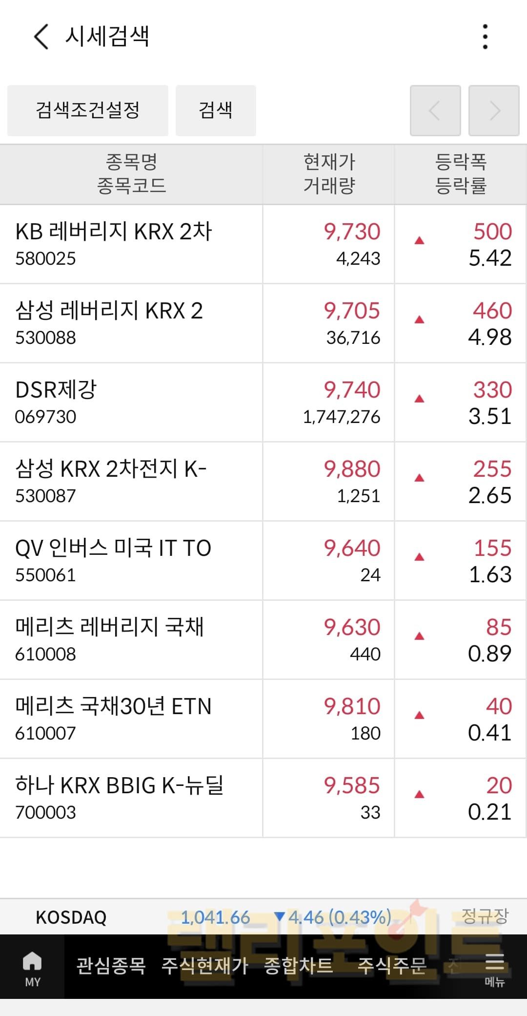 ⑤ 등락률: 당일 일정 % 상승/하락 종목을 찾을 수 있음.