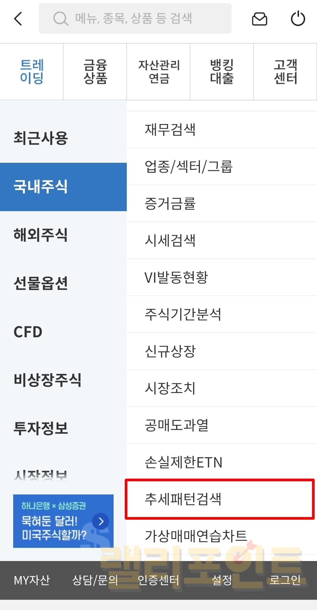 - 국내 주식에서 추세패턴검색을 클릭합니다.