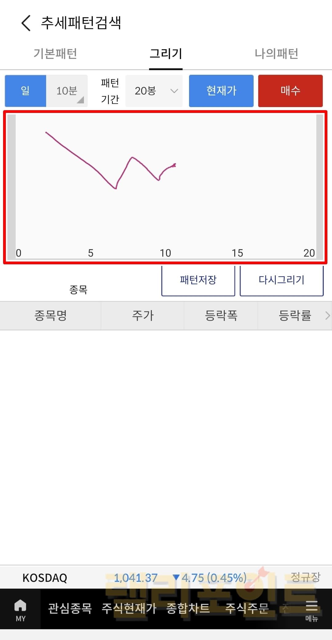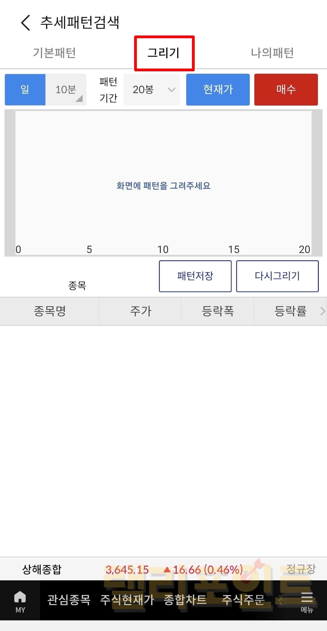 - 내가 원하는 차트 패턴 모양을 손가락으로 그립니다.