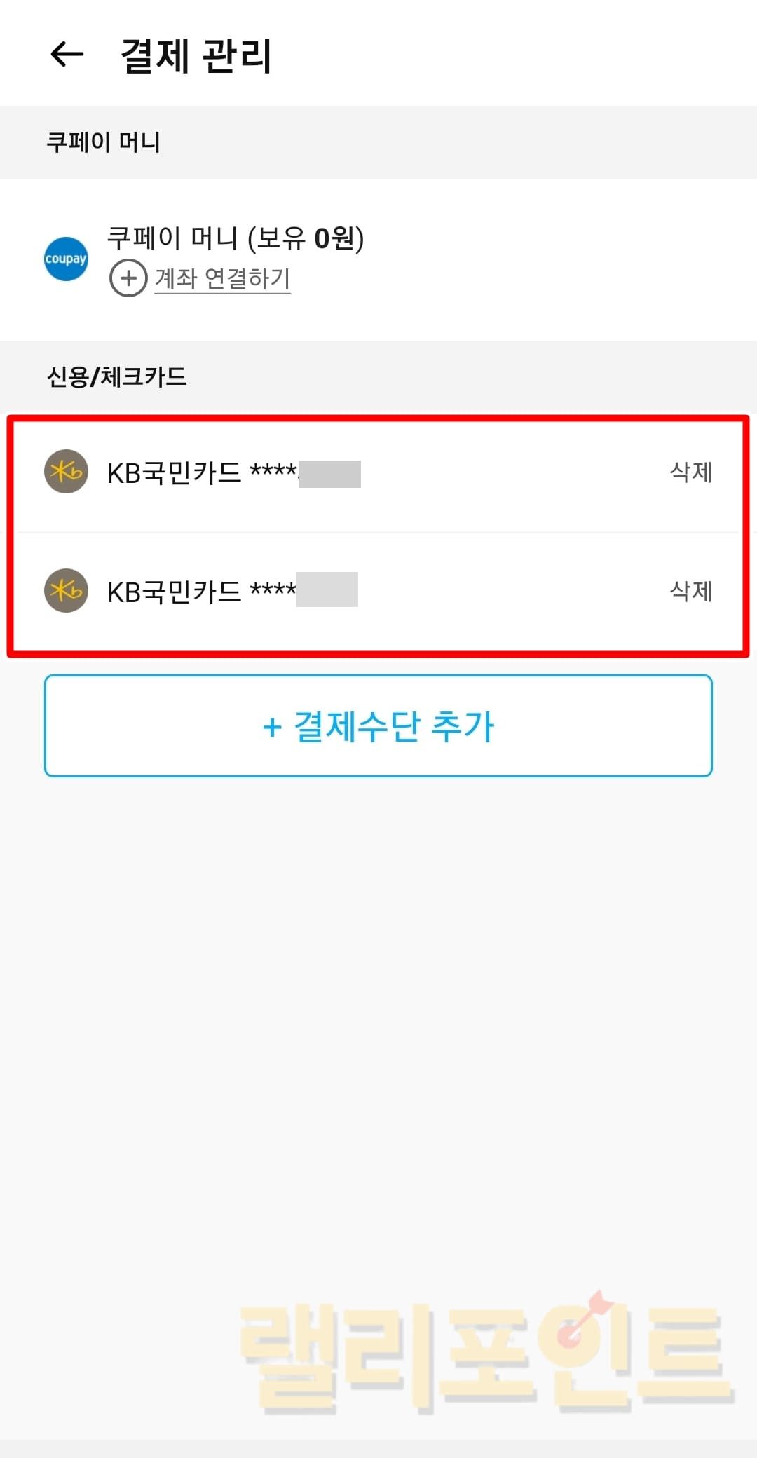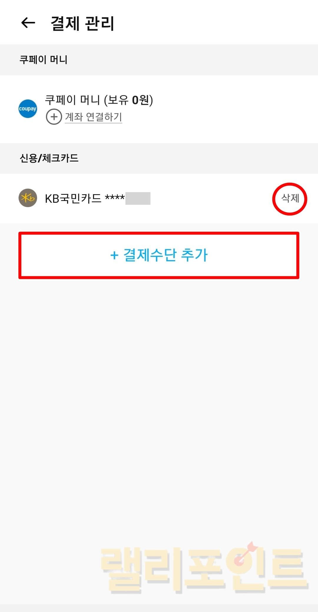 쿠팡이츠 결제수단 변경, 삭제, 추가 방법