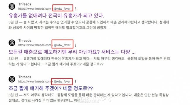 김동완의 성매매 합법화 주장글은 그가 스레드 계정을 폐쇄하며 삭제됐지만, 여전히 구글엔 그 흔적이 남겨져 있다.
