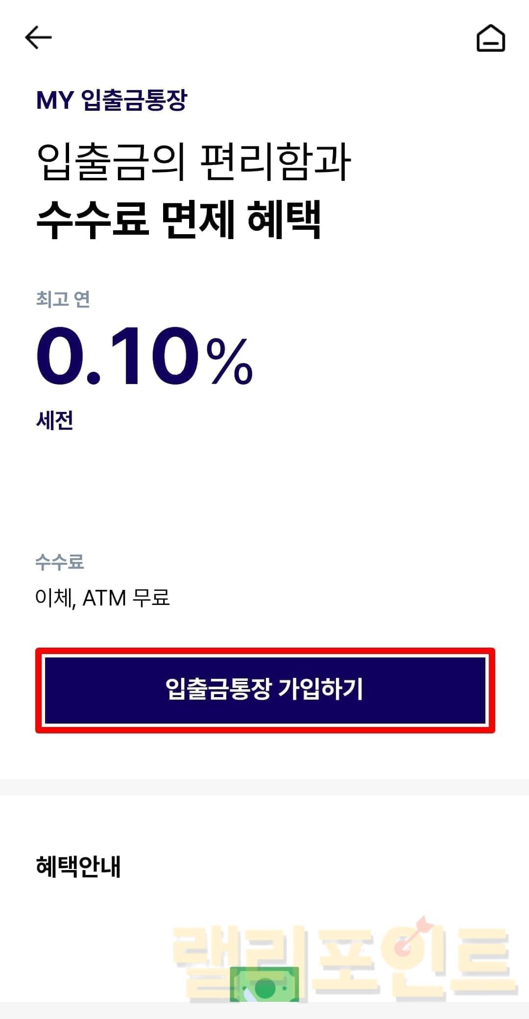 1. 입출금통장 가입하기 버튼을 누릅니다.