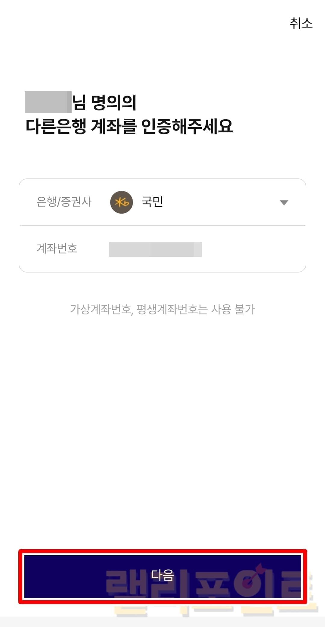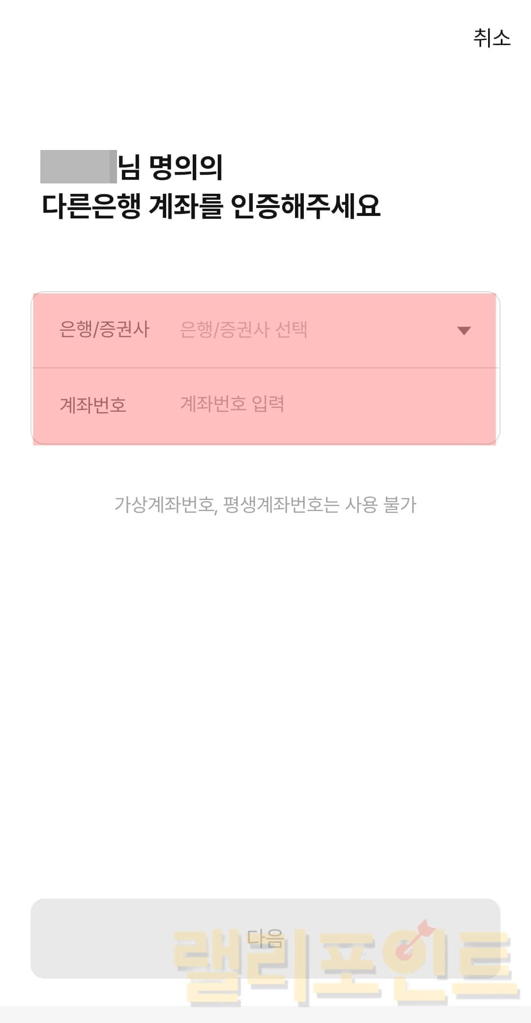 1. 내 명의의 다른은행 계좌 정보를 입력합니다.