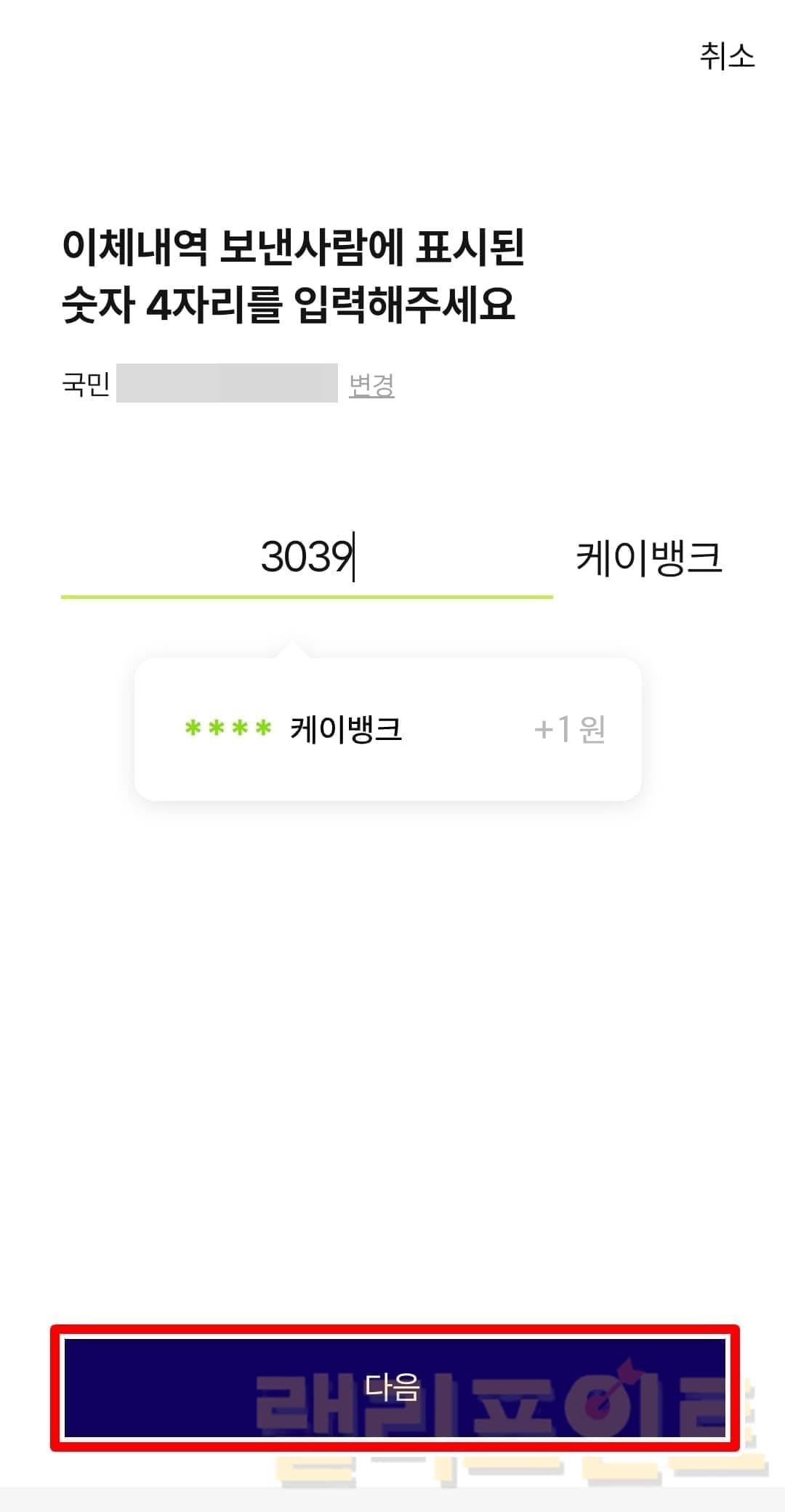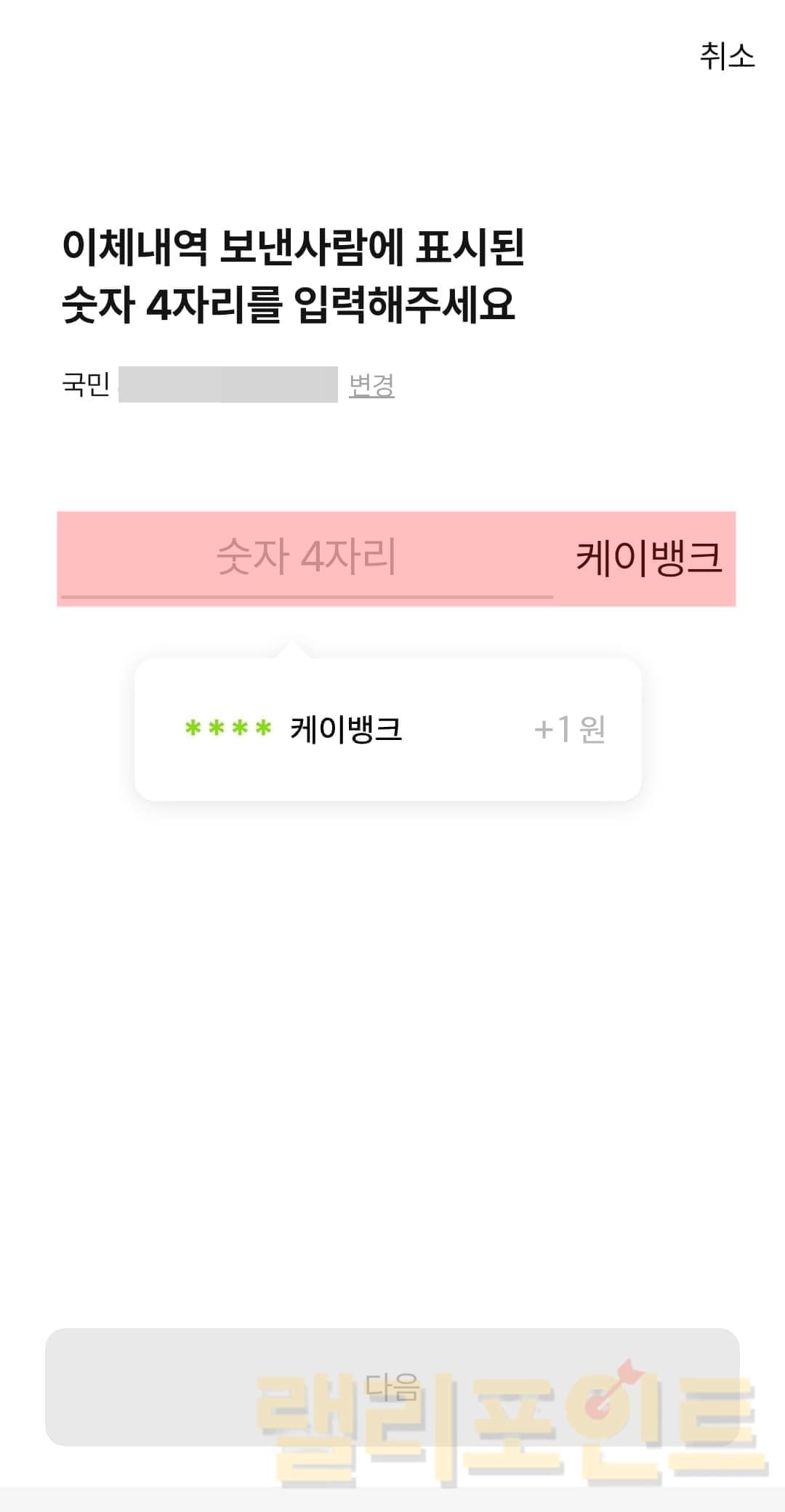 1. 케이뱅크에서 사용할 계좌 비밀번호를 설정합니다.