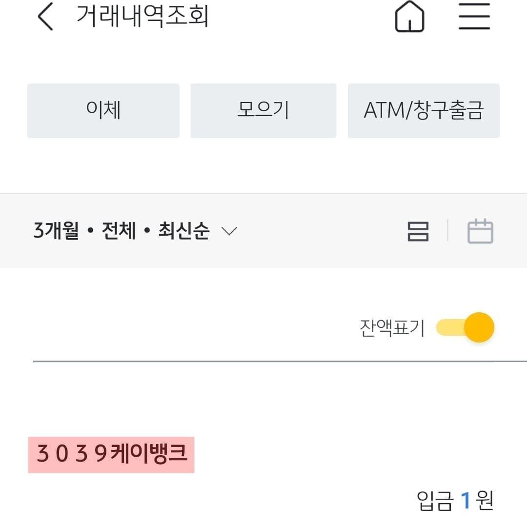 1. 보낸사람에 표시된 케이뱅크 숫자 4자리를 확인합니다.