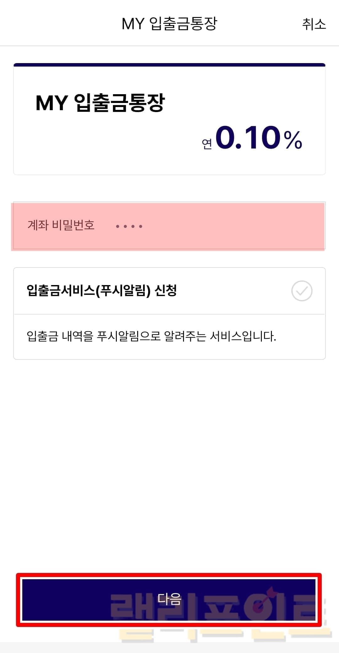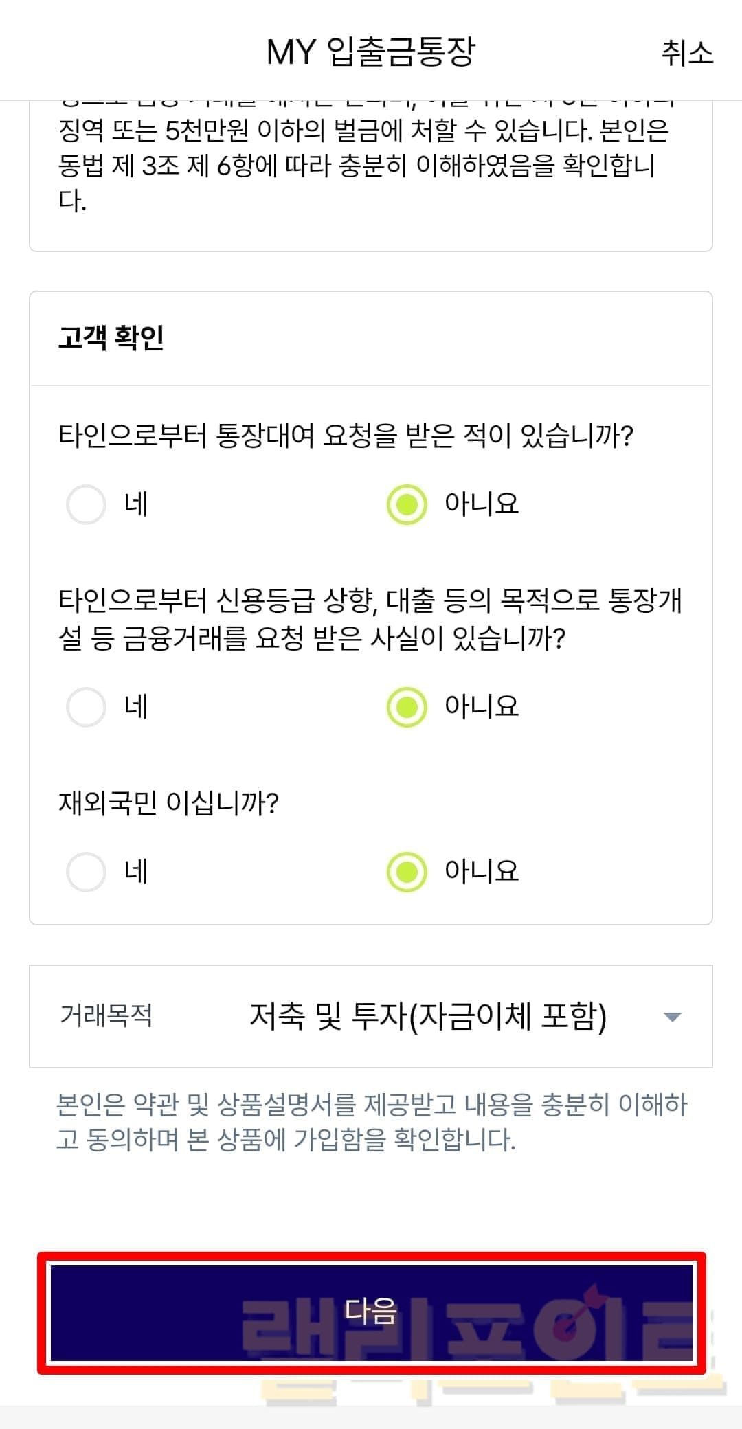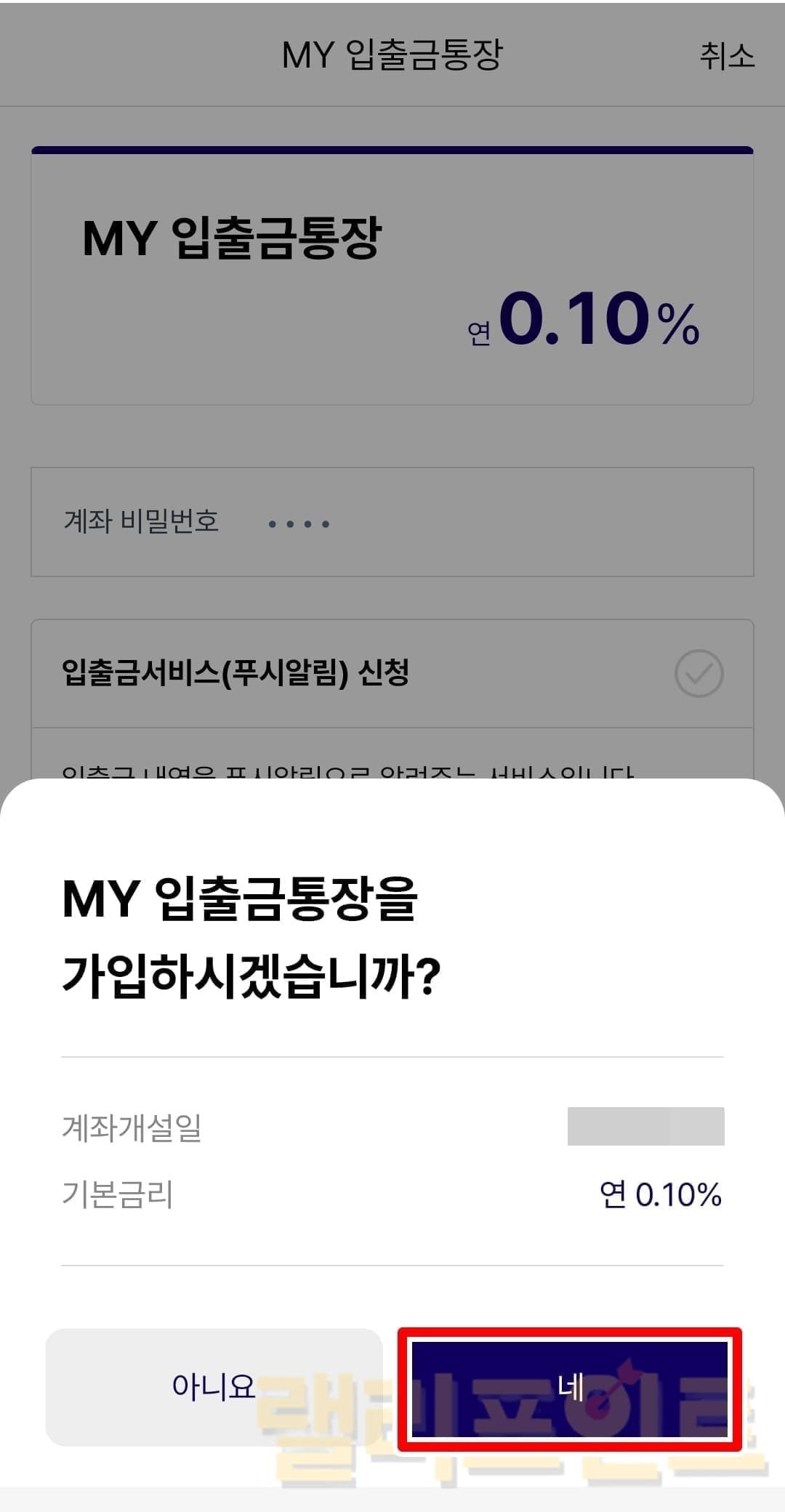 1. MY 입출금통장 가입 창에서 네를 클릭합니다.