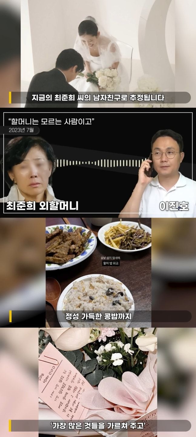 특히 예비신랑 김 씨는 최준희와 친외할머니 정옥숙 여사 사이의 극심한 갈등 중심에 서 있던 인물로 지목됐다. 이진호는 “지난 2023년 7월, 최준희가 정 여사를 주거침입죄로 신고했을 당시, 현장에서 ‘할머니는 이 집에 아무 권리가 없으니 나가라’고 종용했던 남성이 바로 지금의 예비신랑인 것으로 추정된다”고 밝혔다.