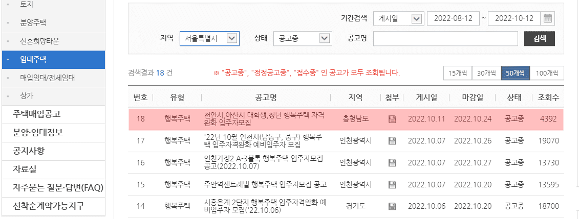 LH행복주택 공고 및 조건 확인 방법