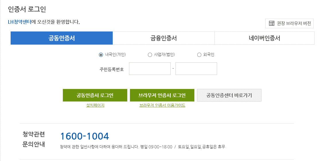 청약시에는 전자공동인증서가 필요합니다.