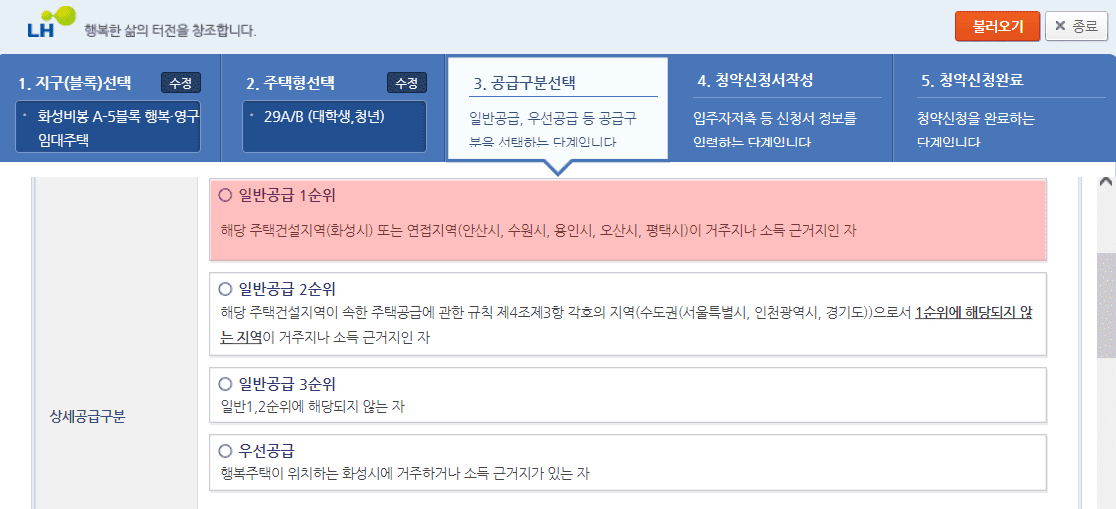 1. 상세공급구분에서 나의 순위를 선택합니다.