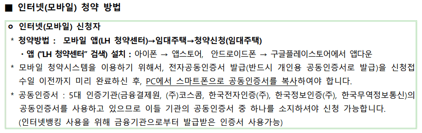청약방법: 모바이리 앱(LH 청약센터) > 임대주택 > 청약신청(임대주택)
