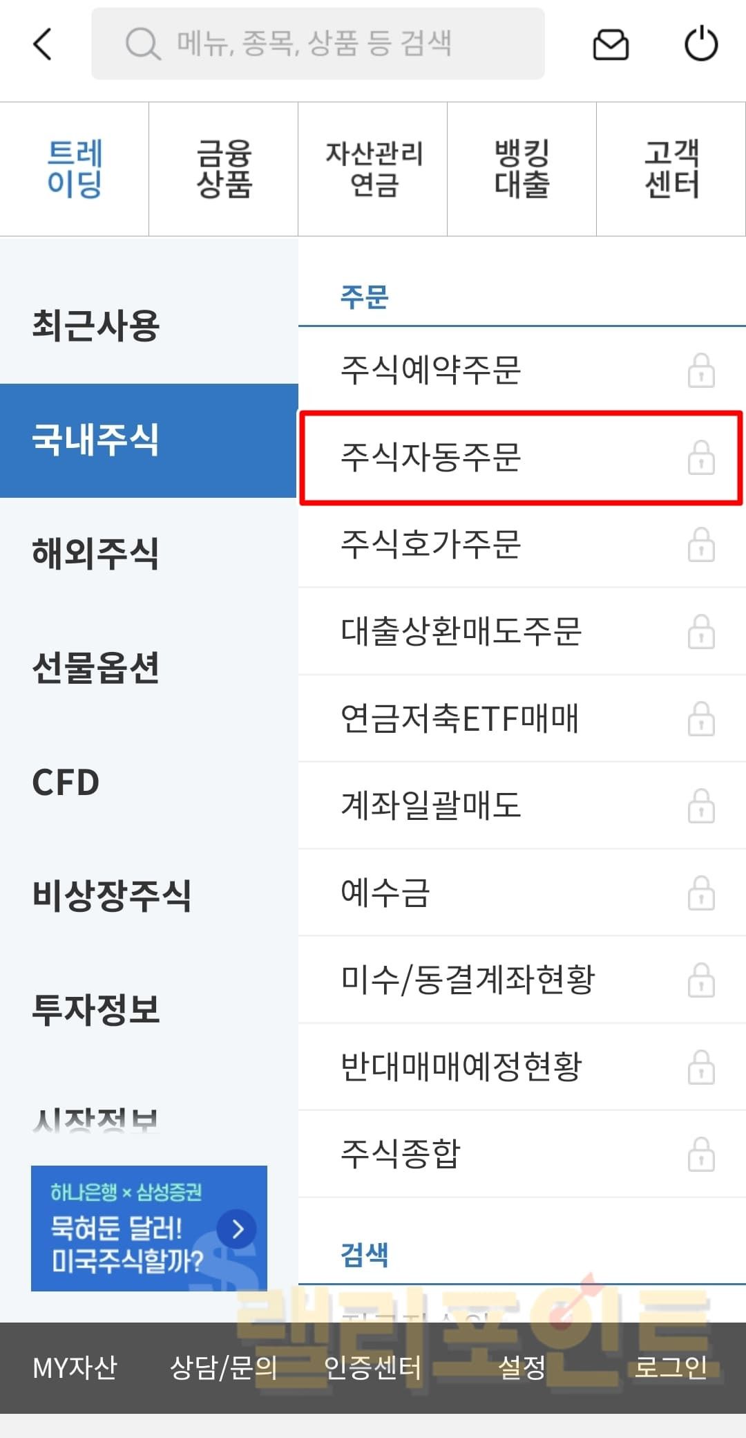 - 주식자동주문을 클릭합니다.