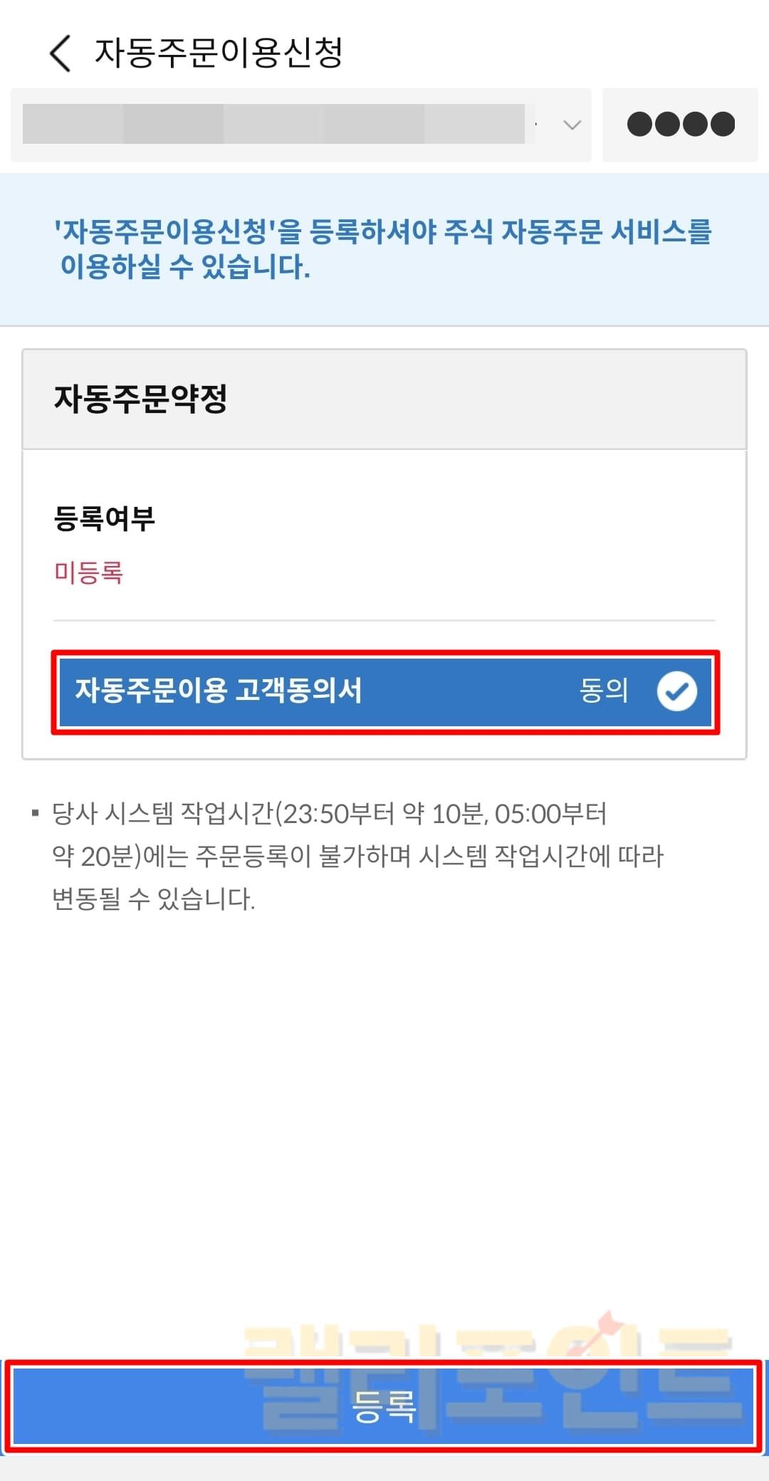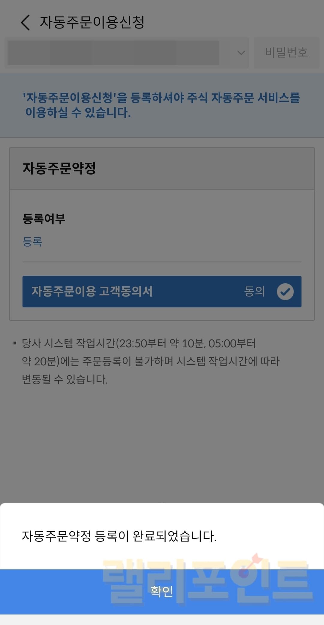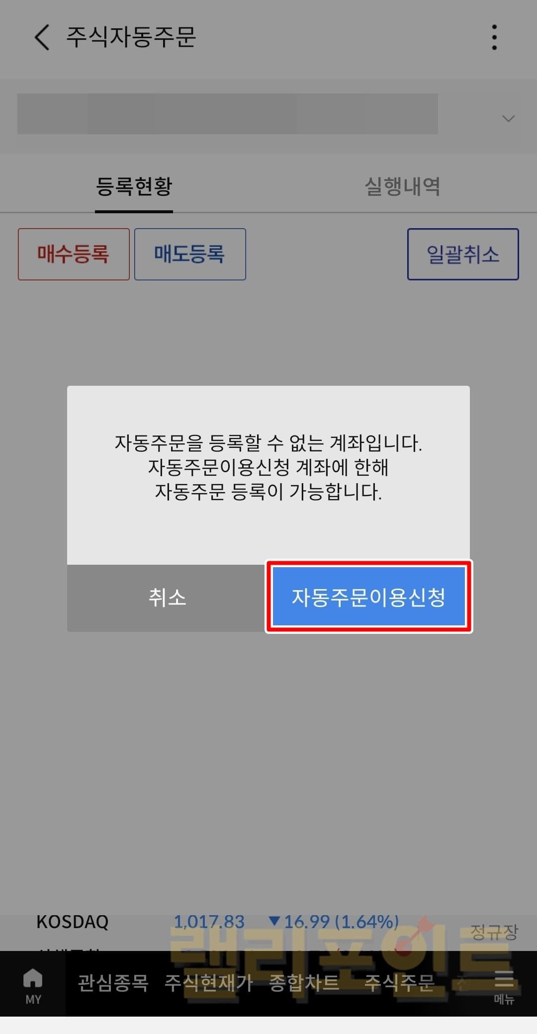 - 자동주문이용신청을 누릅니다.