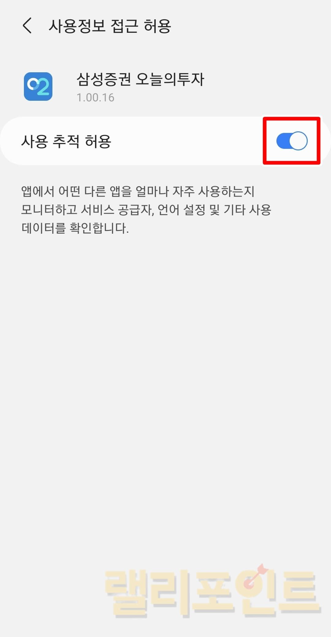 - 사용정보 접근 허용을 활성화합니다.