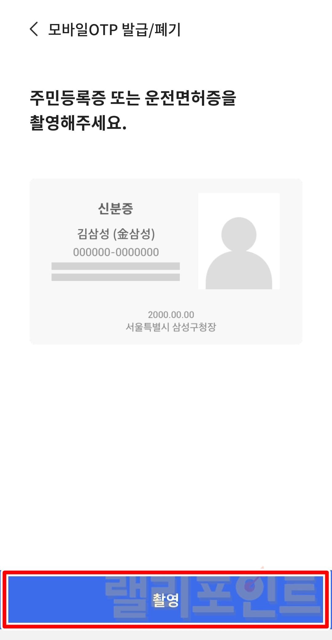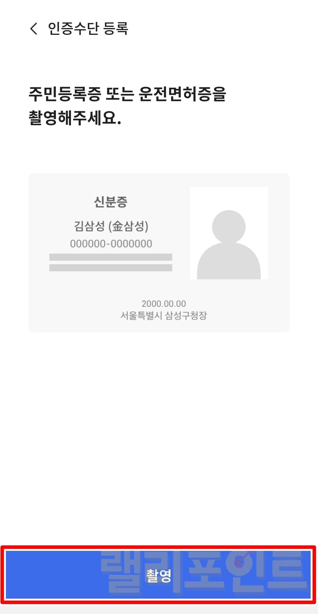 - 주민등록증 또는 운전면허증을 촬영합니다.
