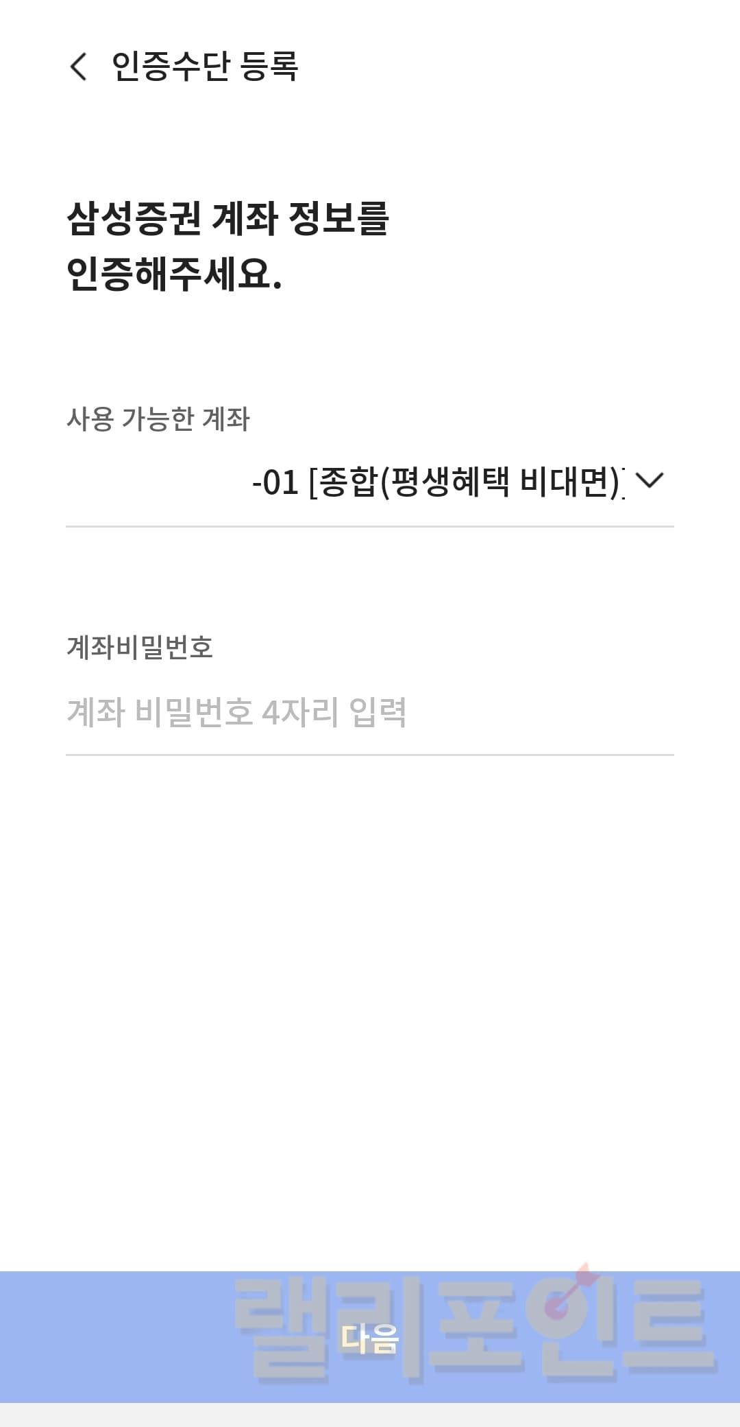 - 나의 삼성증권 계좌비밀번호 4자리를 입력합니다.