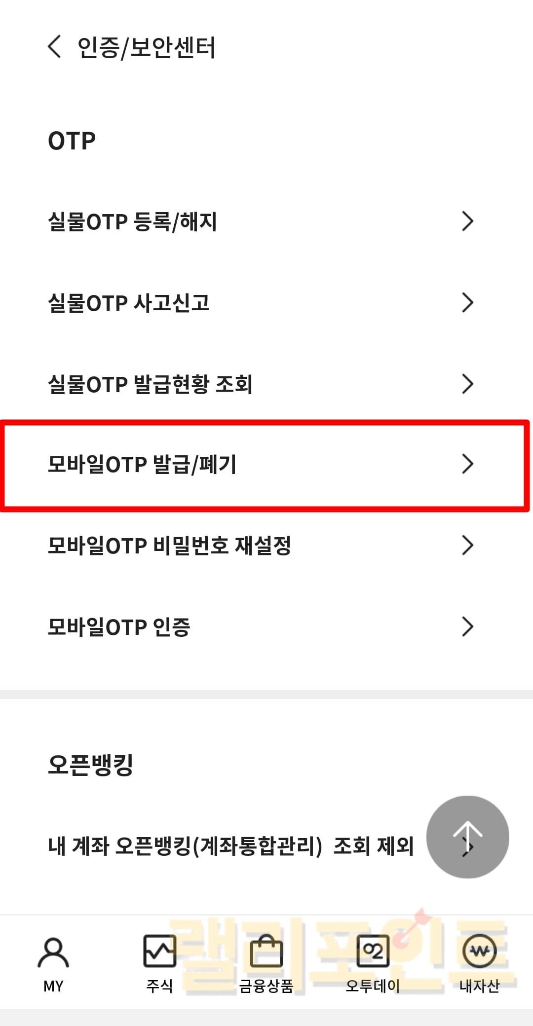 - 모바일OTP 발급/폐기를 클릭합니다.