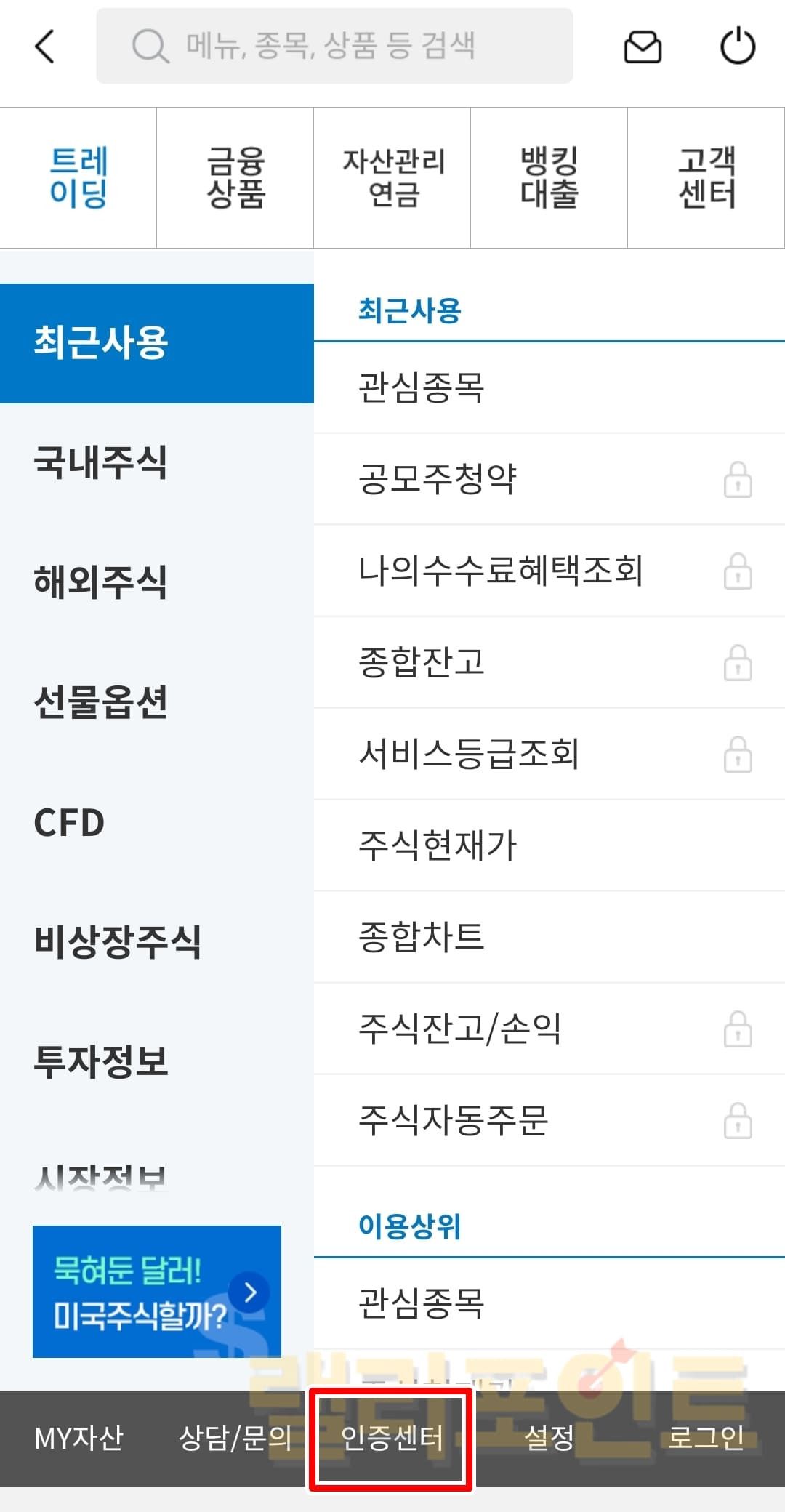 1. 삼성증권 mPOP MTS 앱을 실행합니다.