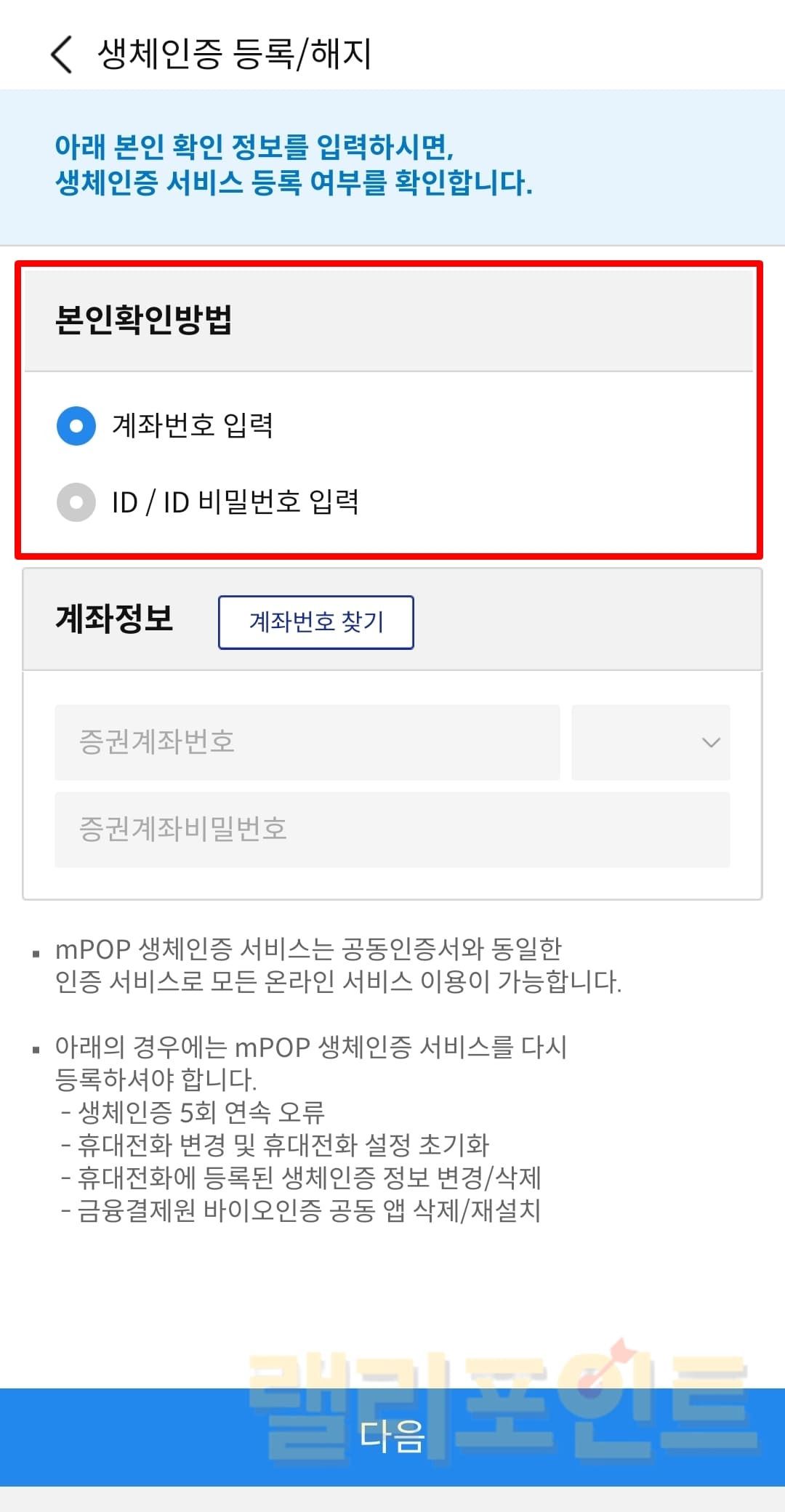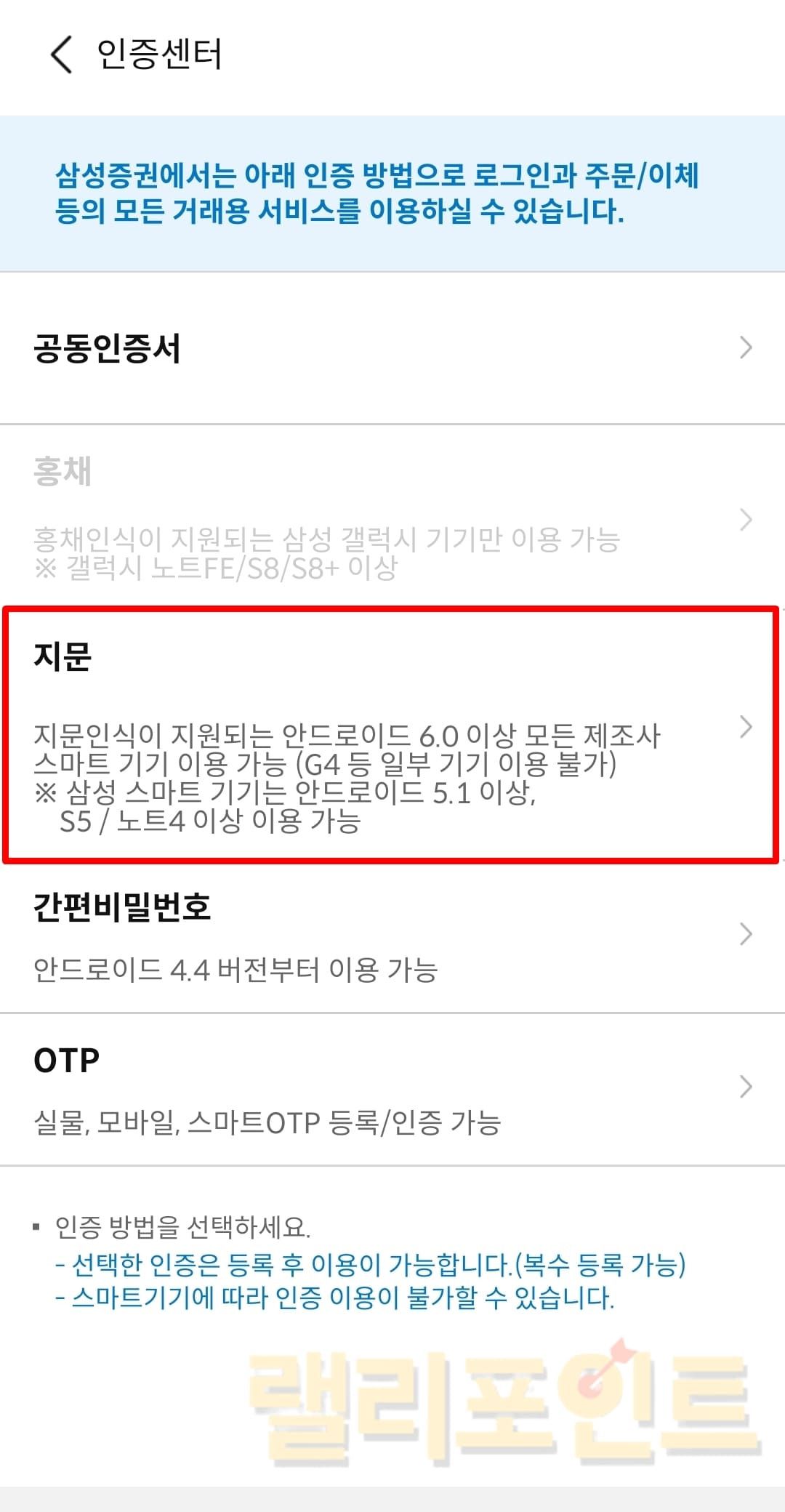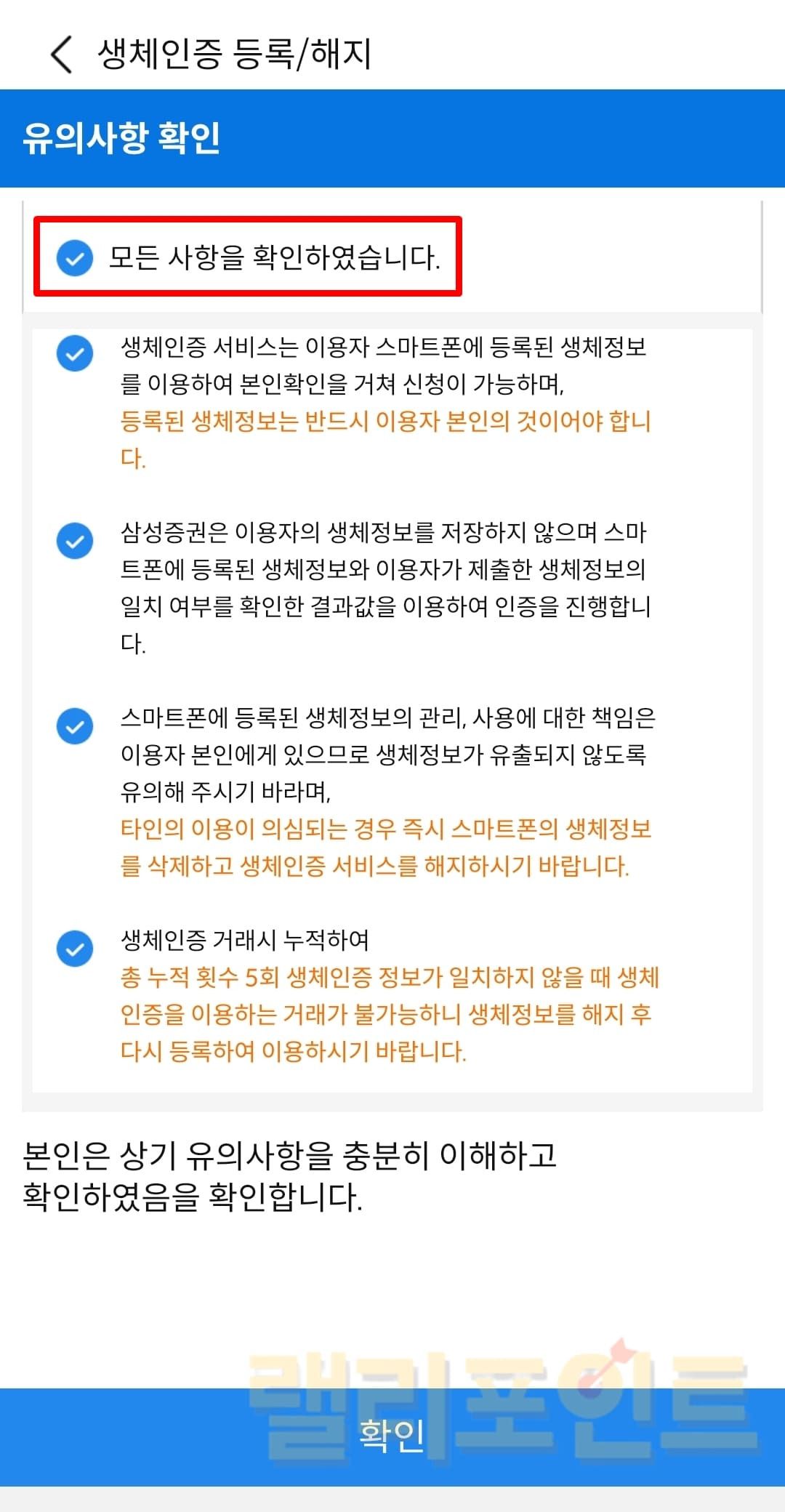 1. 삼성증권 지문인식에 대한 모든 사항을 확인합니다.