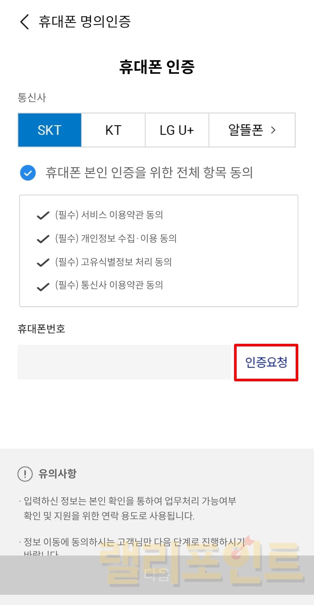 1. 본인의 휴대폰으로 문자 인증을 진행합니다.