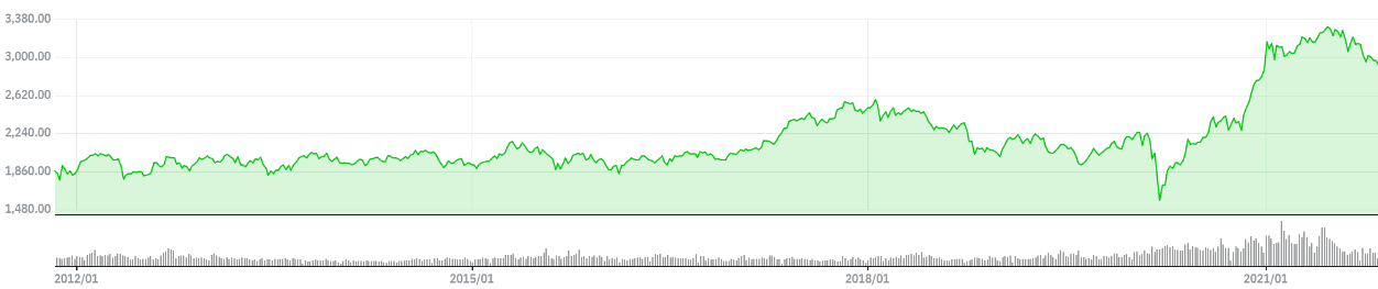 2021.11.10일 기준 현재 코스피는 2,930.17 포인트로 1980.01.04일 기준보다 약 29.3배의 상승이 이뤄졌습니다. 상승률을 바탕으로 40년 전에 1억원을 투자했다면 현재 29억 3천만원이 될만큼 상승세가 계속되고 있다고 생각하시면 됩니다.